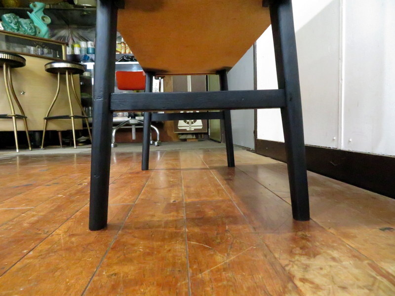 脚や縁周りは黒塗りのタイプとなり、脚は下地に木目が感じられますので、オーク系やタモの様な物が使われているようです。