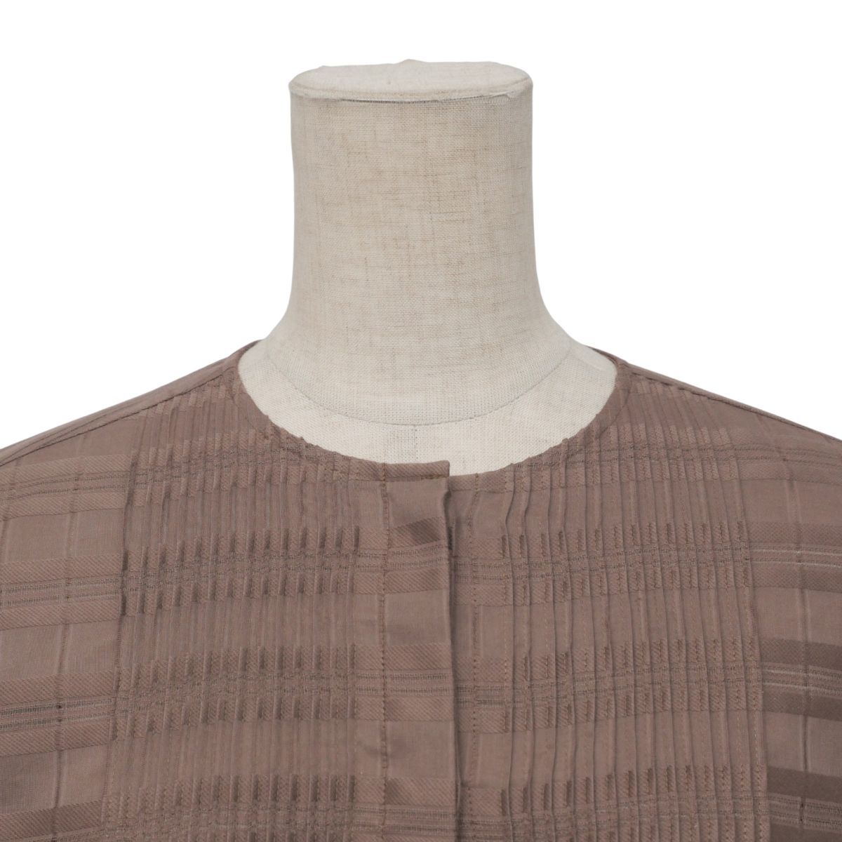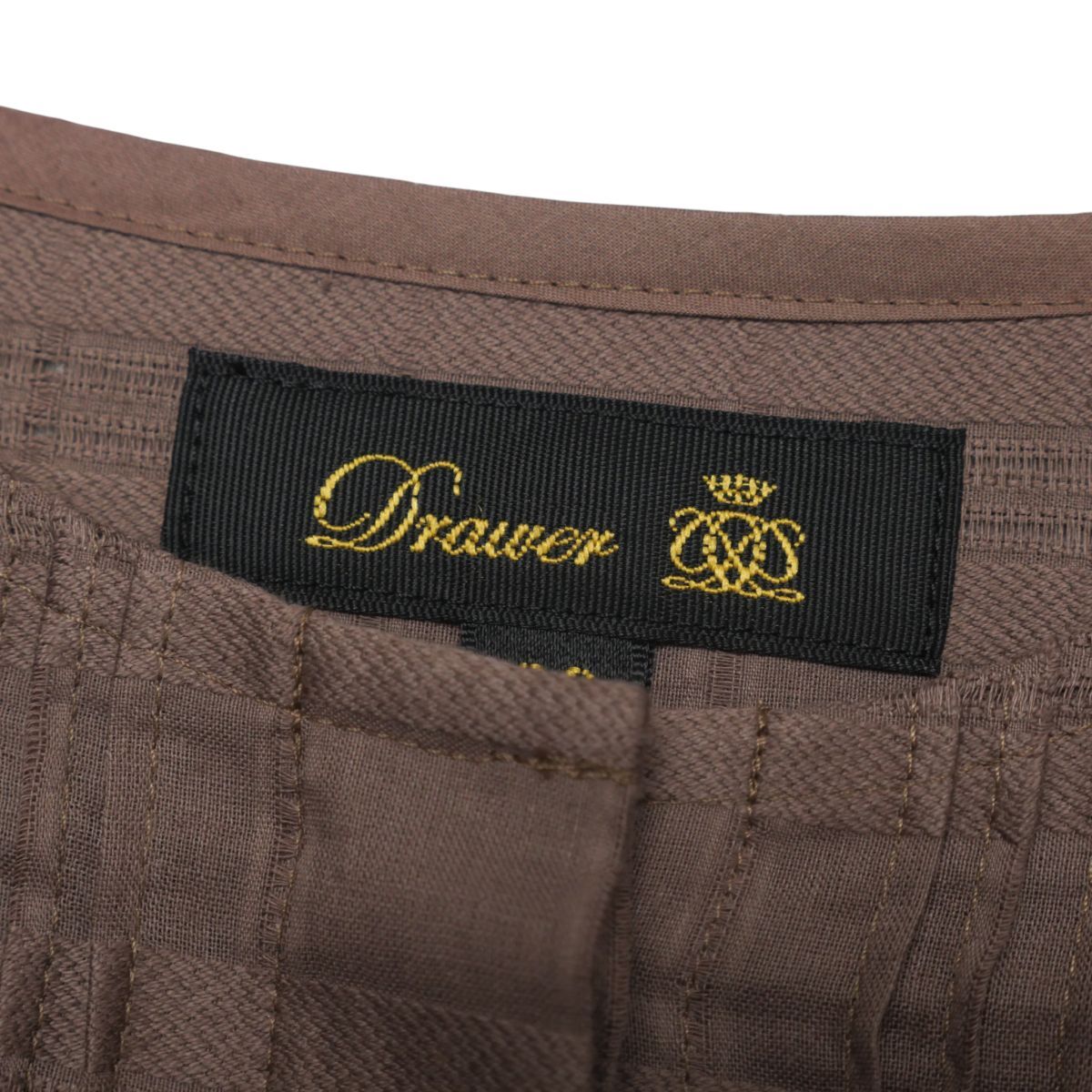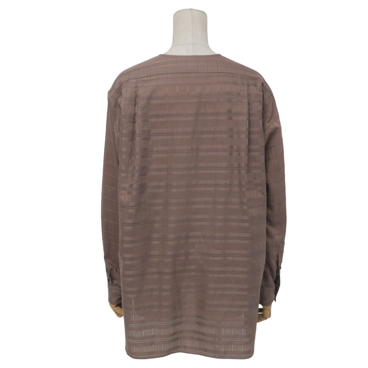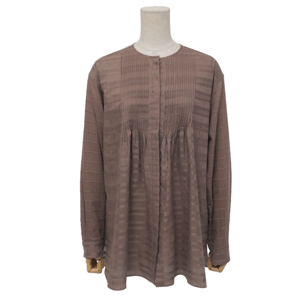 TJ4907☆ドゥロワー Drawer コットンドビー ノーカラー ピンタックブラウス シャツ チュニック 長袖 チェック柄 ブラウン サイズ36 | |||