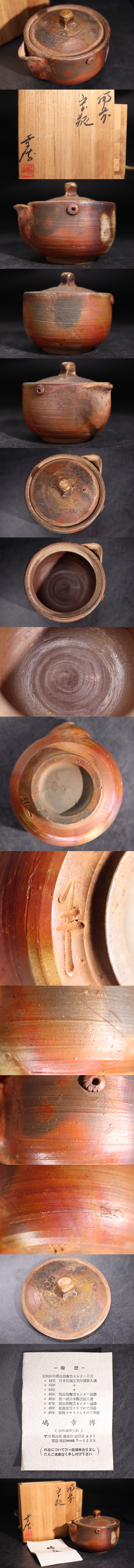 | 嶋幸博 造 備前 宝瓶 栞 共箱付 / 備前焼 窯変 泡瓶 急須 茶器 煎茶道具 手捻り 手造 .G2727 |
