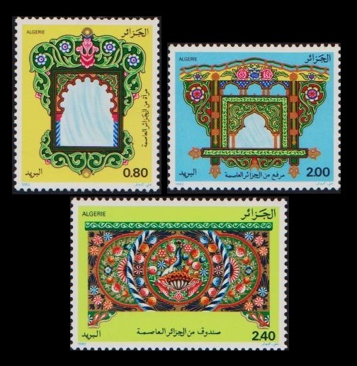 la313y1-2a アルジェリア1982年 鏡や箪笥など装飾家具・3枚完
