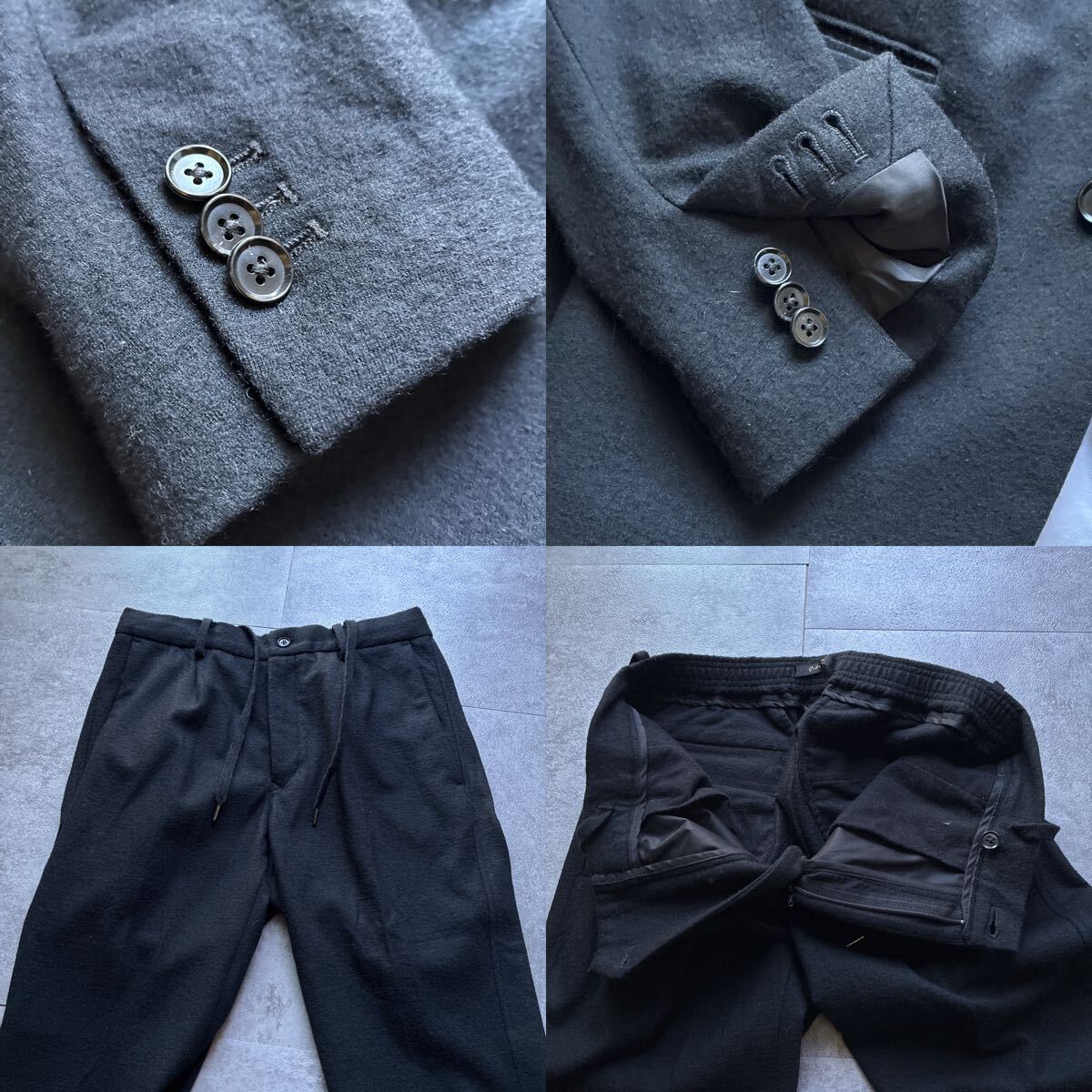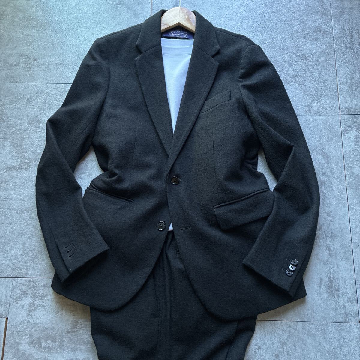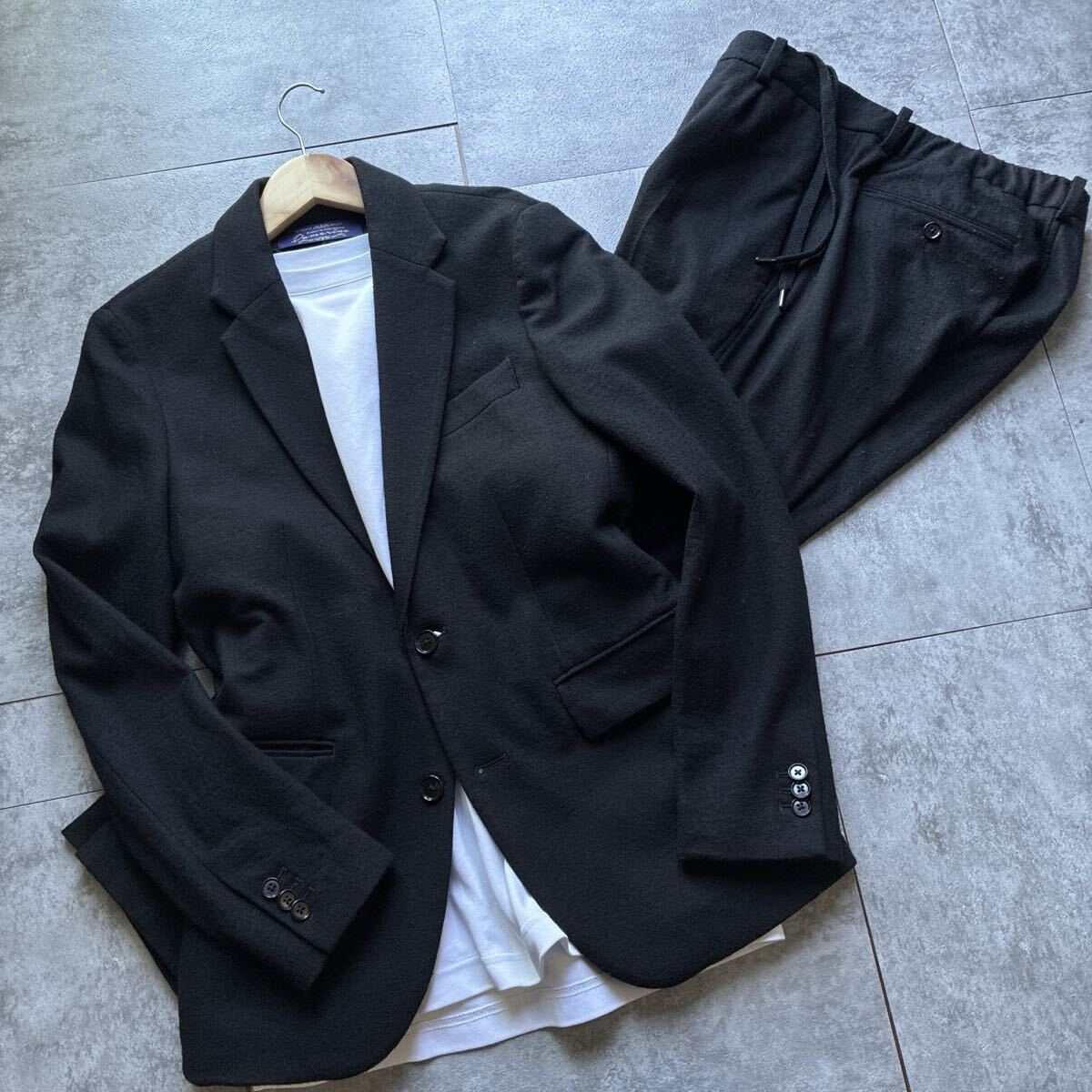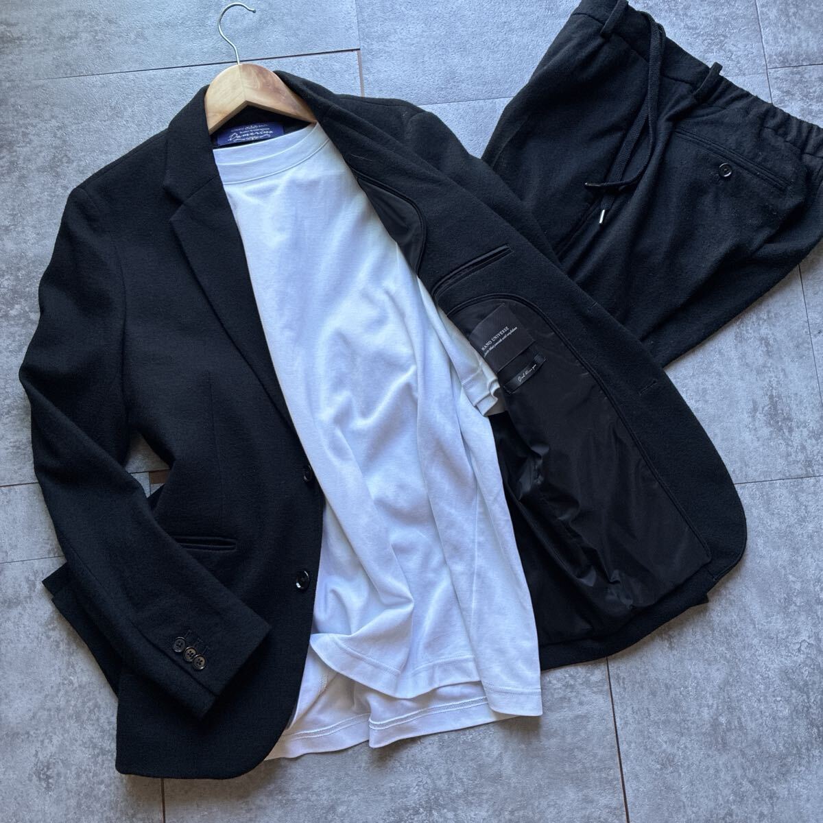 NANO UNIVERSE(ナノユニバース)のテーラードジャケットとスラックスのセットアップです。上品なブラックカラーで、