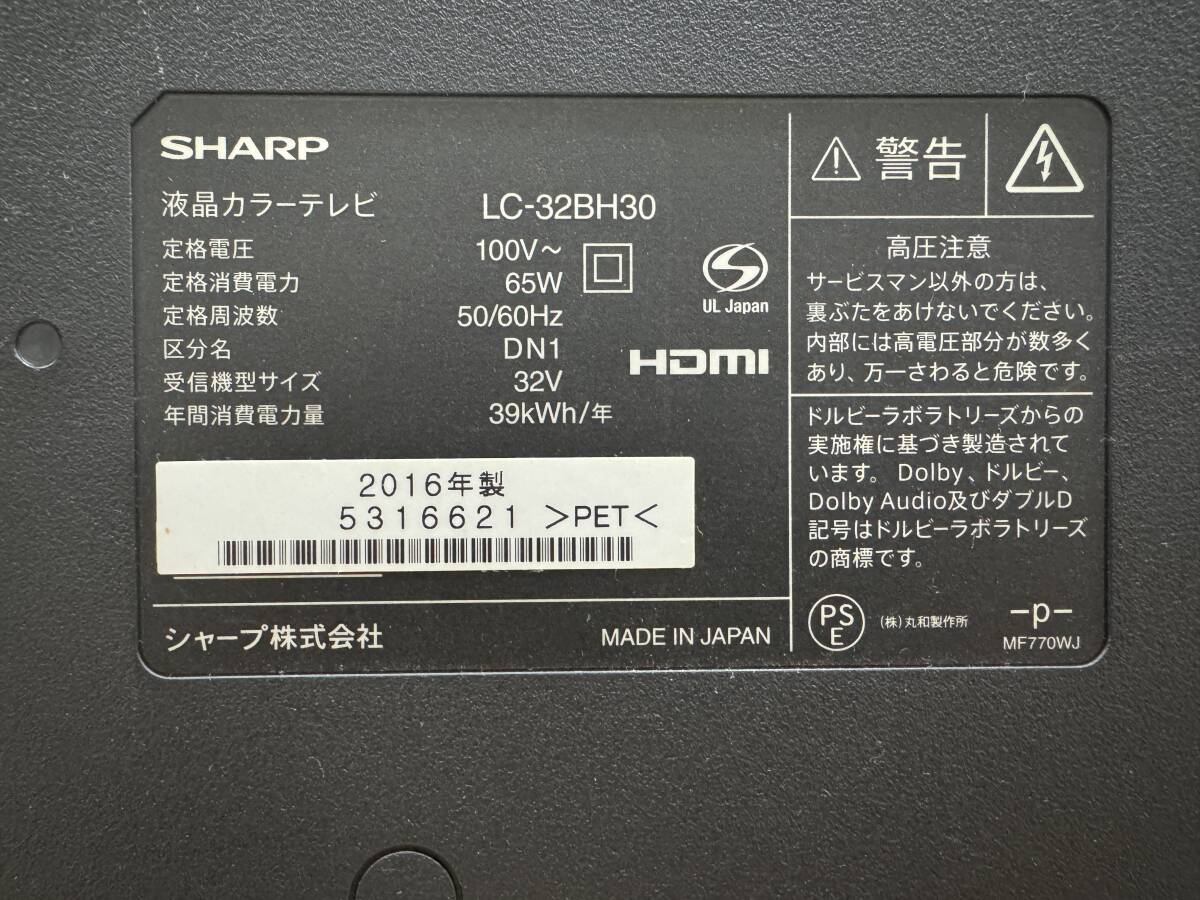 32型 シャープ AQUOS LED 液晶テレビ 2016年製 LC-32BH30 AQUOS City接続可 ネット動画 u-next DMM 視聴可能 管理F1589