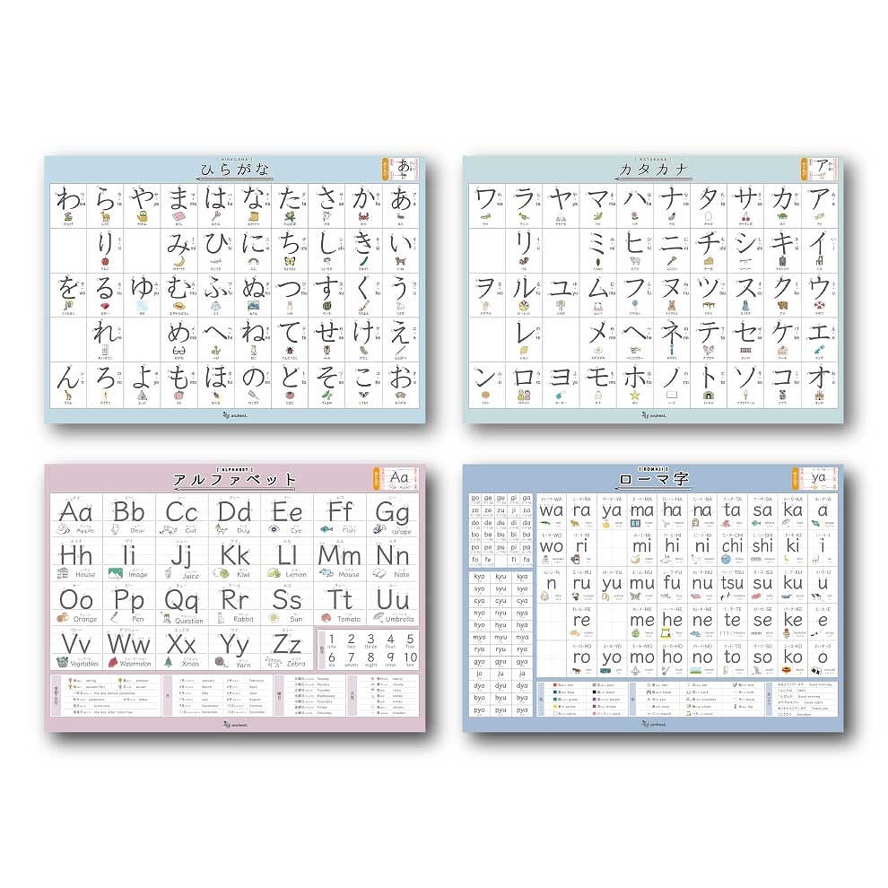 ■内 容:ひらがな(1枚)、カタカナ(1枚)、アルファベット(1枚)、ローマ字(1枚)