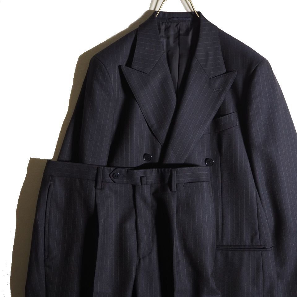 ペンシルストライプ 6ボタン スーツ ネイビー 46