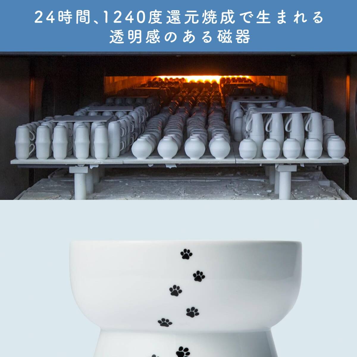 【脚付だから自然な姿勢で水が飲める】猫は比較的食道がまっすぐな動物です。そのため、水飲みを脚付きにしてあげると、猫が自然な体勢で水を飲むことができます。特に高齢の猫や病気の猫でも楽に水を飲むことができ、飲水量upにも繋がります。また食器内側の縁には返しがついているので、飲みこぼしも防いでくれます。