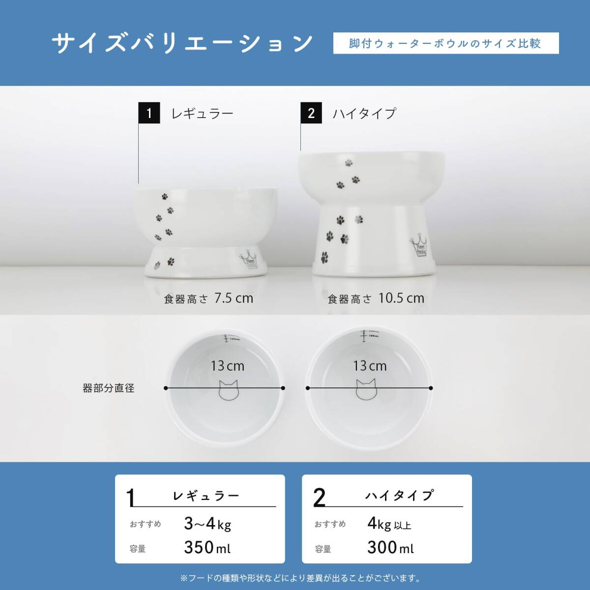 【猫壱の大人気ハッピーダイニングシリーズ「脚付ウォーターボウル」】猫壱といえば?なハッピーダイニング脚付ウォーターボウル。プチリニューアルをして、「すべりどめシリコン」が付いてパワーアップ。「レギュラーサイズ」に加えて、新たに「ハイタイプ」が登場し、2サイズ展開になりました。猫の体格と好みに合わせてお選びいただけます。