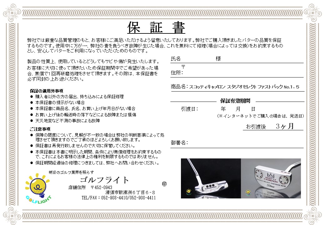 モデル | スコッティキャメロン スタジオセレクト ファストバックNo.1.5 ミラー加工仕上げ | シャフト | 純正 |