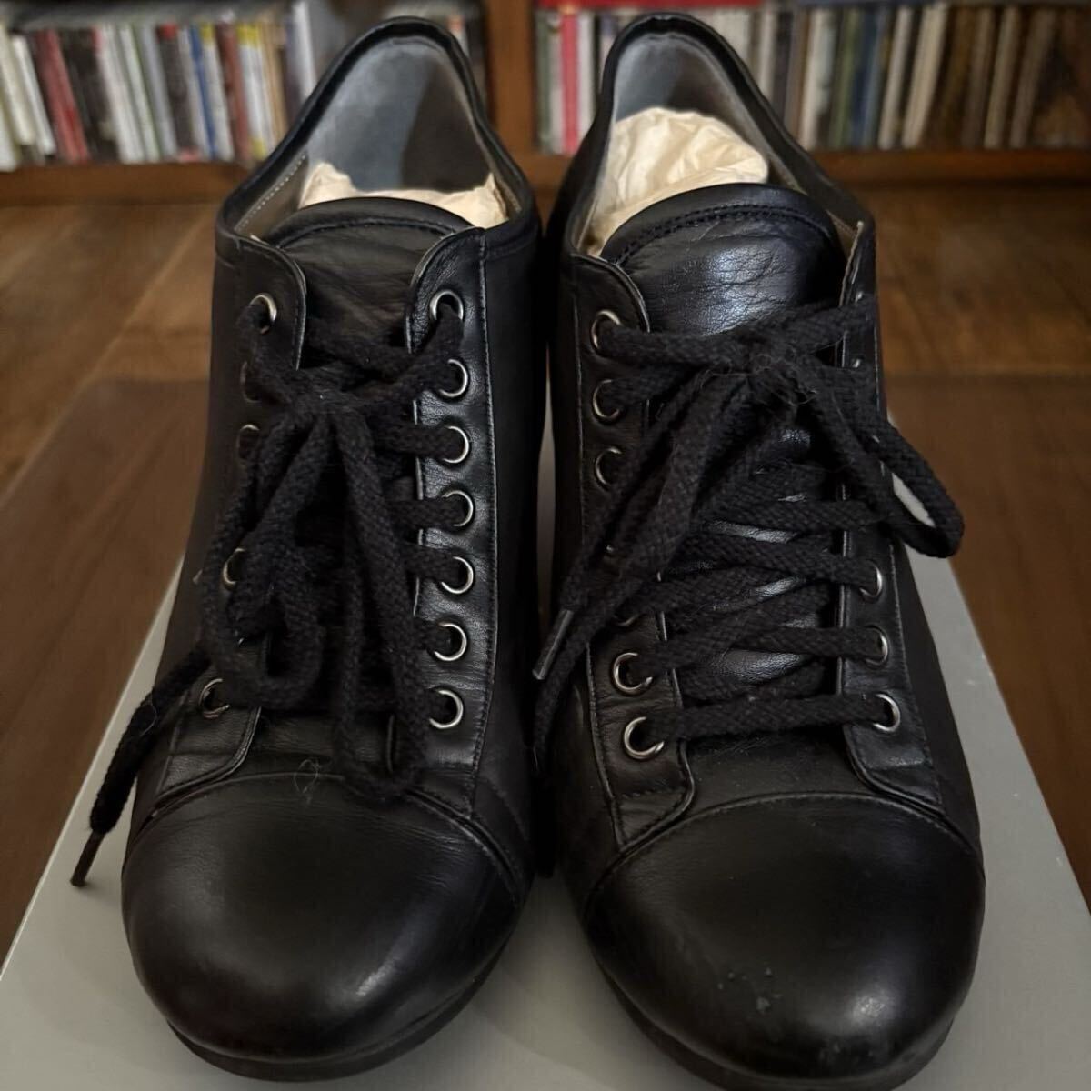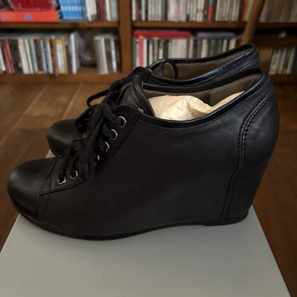 運動靴タイプですがすごく皮が柔らかくて履きやすく、ウェッジヒールは7〜8cmありエレガントな形です。