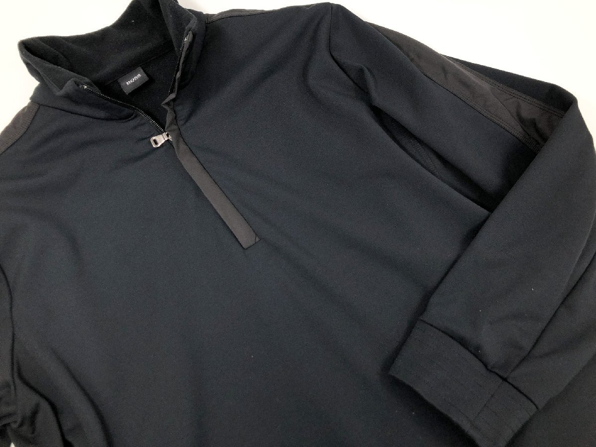 美品【HUGO BOSS ヒューゴボス】ポリエステル スタンドカラー ハーフジップブルゾン ジャージ (メンズ) sizeXL ブラック ◇17MT6332◇