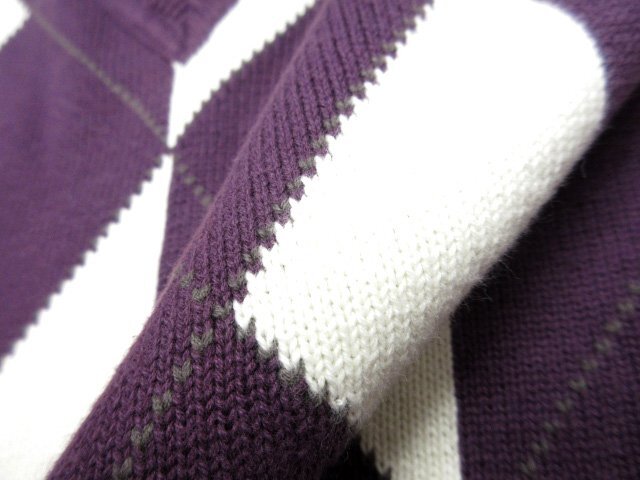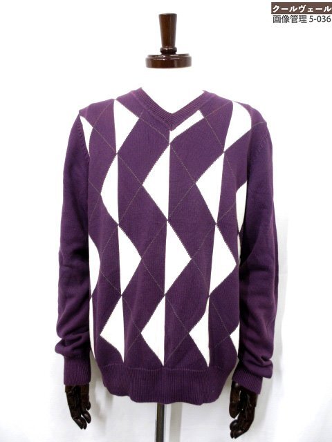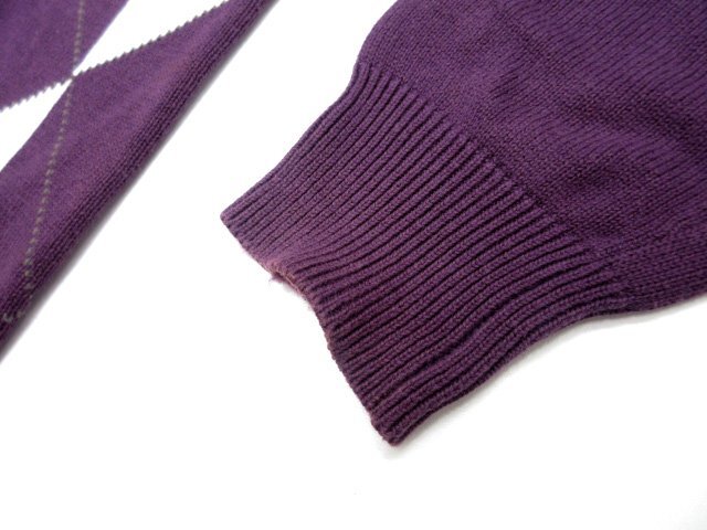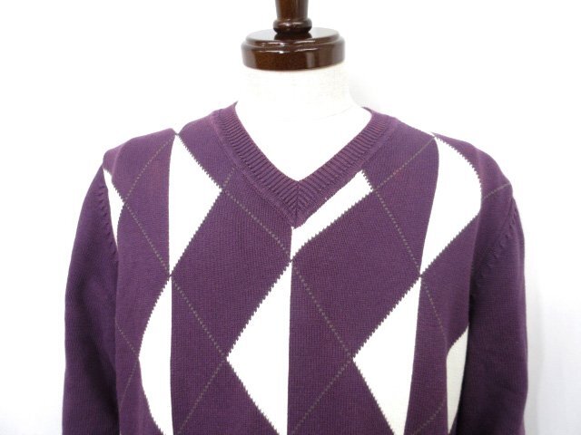 超美品【J.LINDEBERG ジェイリンドバーグ】 Vネック 長袖ニット ゴルフウェア (メンズ) sizeL パープル系 アーガイル柄 ◇33MN6176◇