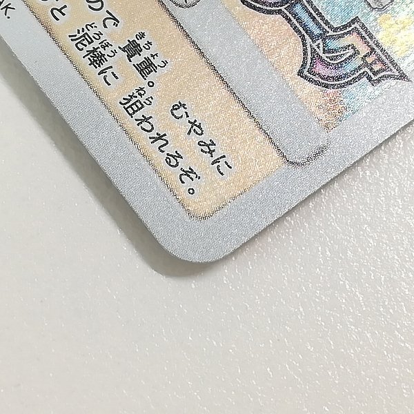 微かなダメージが僅かに見られる程度で、中古商品としては良好な状態であると判断します。 トラブル防止の為、プレイ用のカードとお考えください。 詳細は画像にてご参照ください。 商品は画像にあるものが全てです。 現状でのお引渡しとなりますので状態に十分ご理解いただいた上でのご入札をお願い致します。 検品者からの一言 中古品としては比較的状態が良いお品物です!ダメージも少なめですので、お探しの方はこの機会に如何でしょうか! - 商品状態に関しましては、あくまで主観によるものでございますので、ご参考程度にお考え頂くようお願い致します。 ※出品商品は全て中古買取品となります為、完璧をお求めの方、また中古品にご理解のない方におきましては、恐れ入りますがご入札をお控え頂きますようお願い申し上げます。 - ジャンク品、処分品、画像にて判断可能なご質問については、お答え致しかねます。 - 商品の色は、お使いのモニター設定や照明等により実際の商品と色味が違って見える場合がございます。 |
