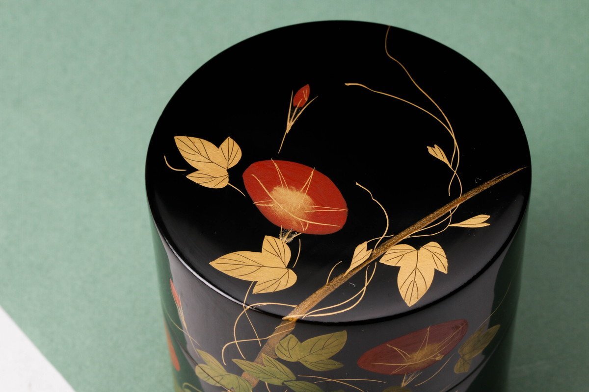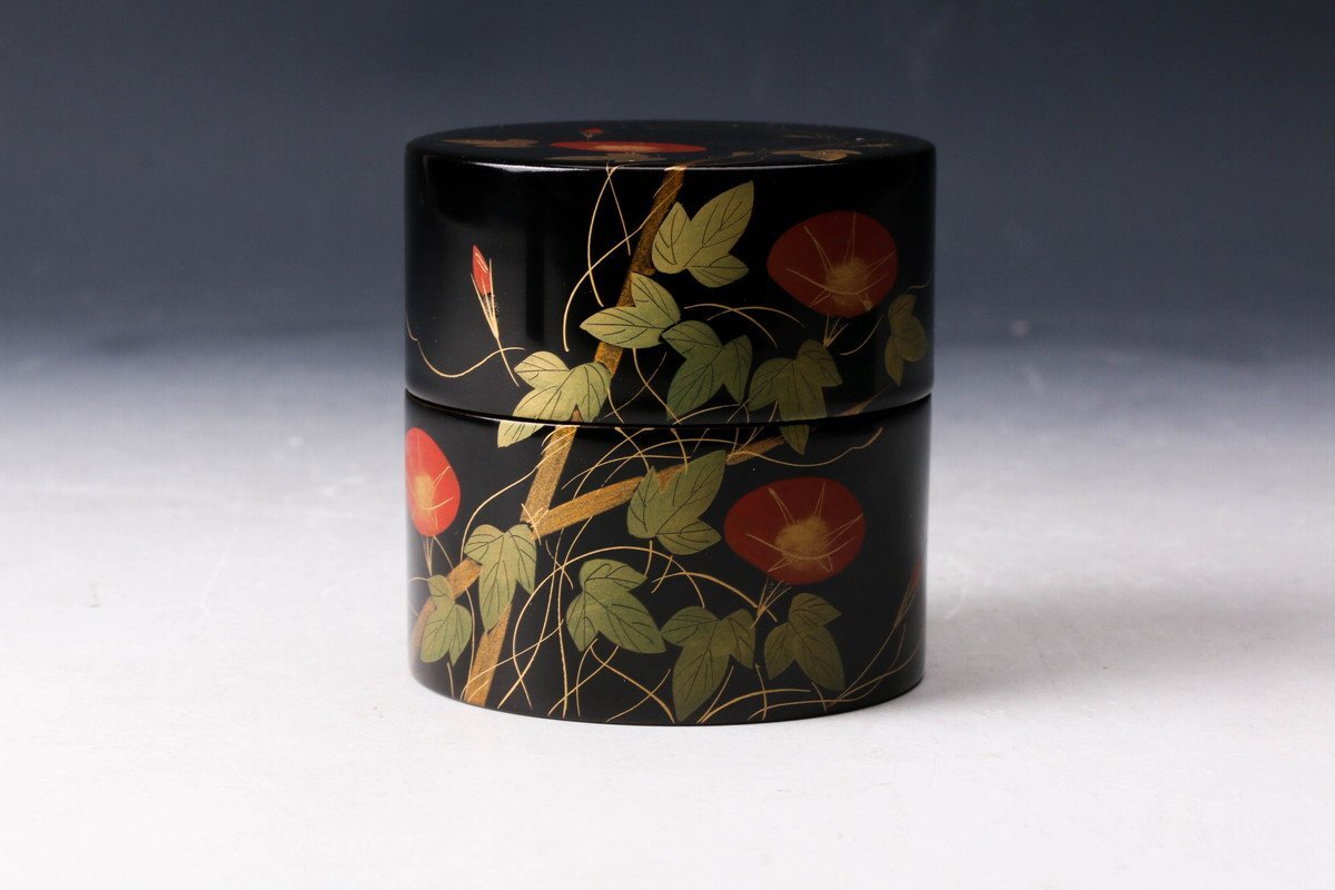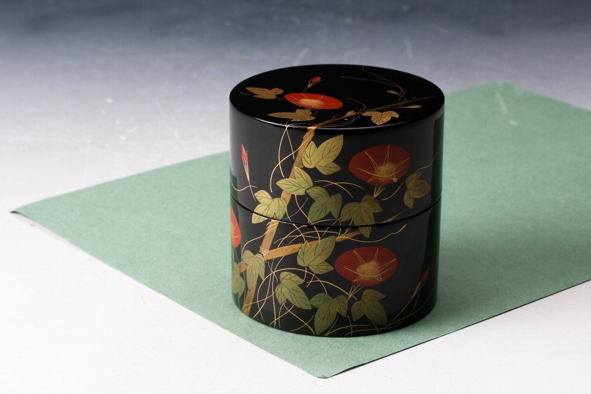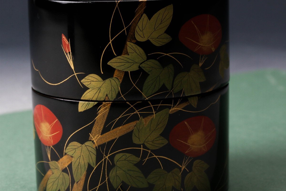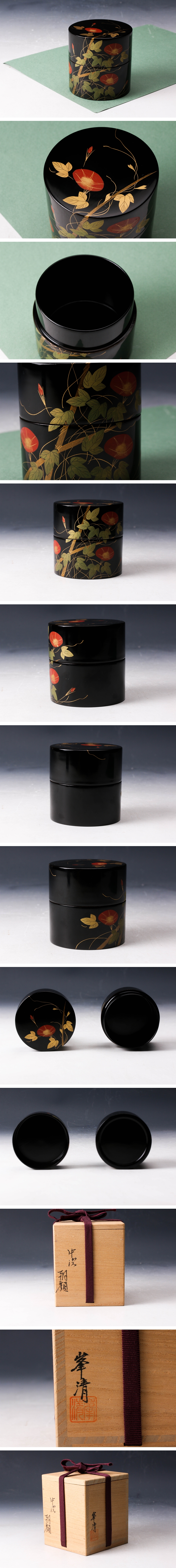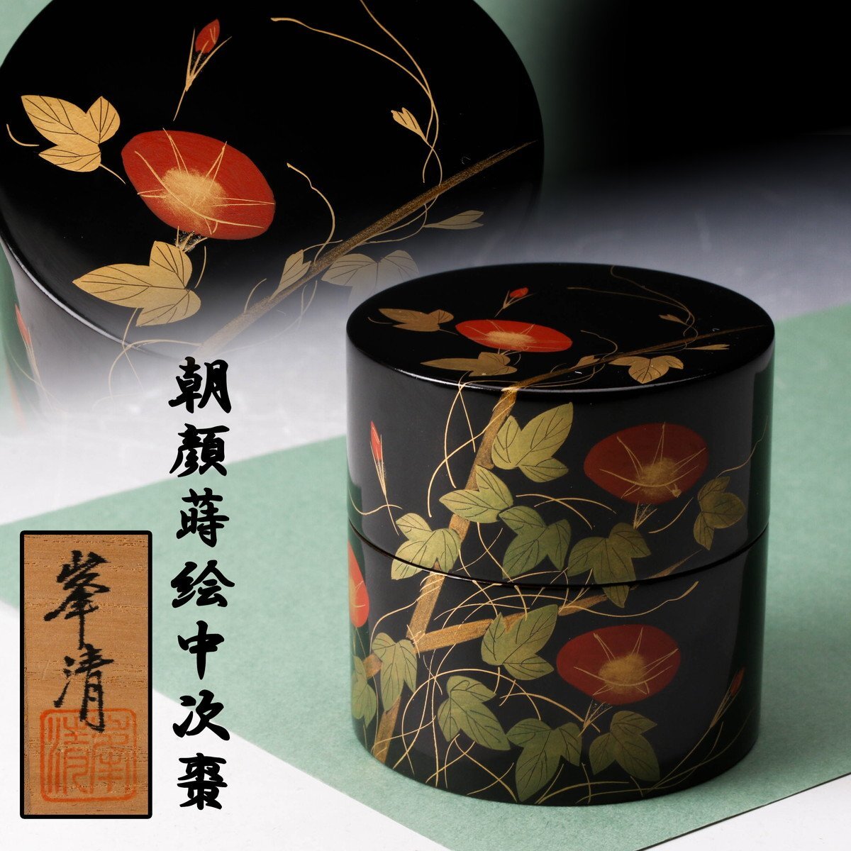 【佳香】峯清 朝顔蒔絵中次棗 共箱 茶道具 本物保証