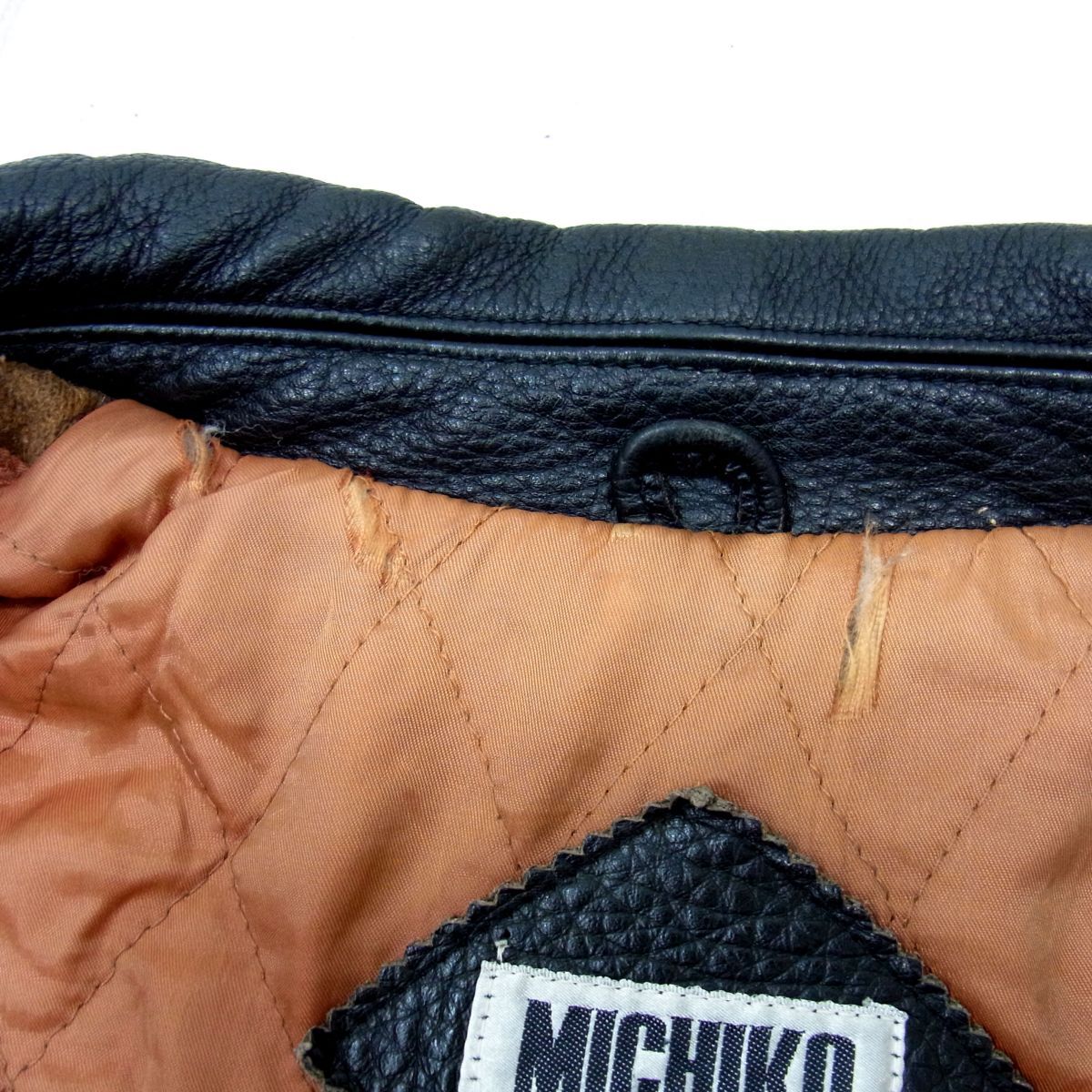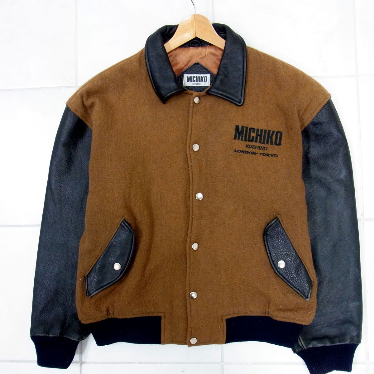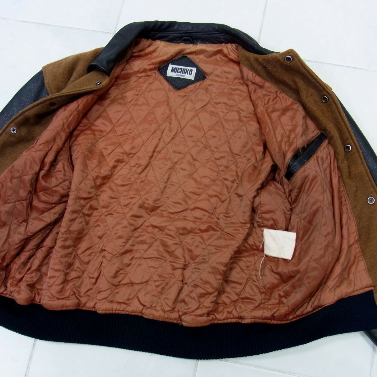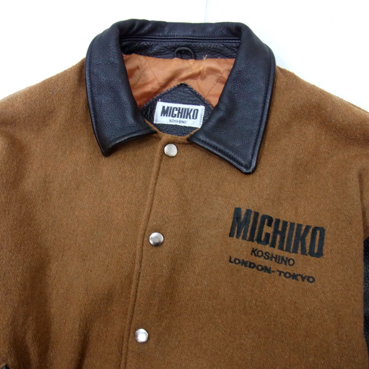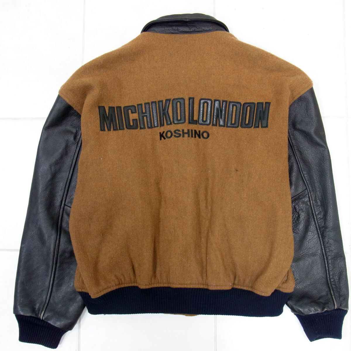 希少80s オールドヴィンテージ MICHIKO LONDON KOSHINO ミチコロンドン 袖革スタジャン 両面ロゴ刺繍 中綿 メンズ 1円スタート