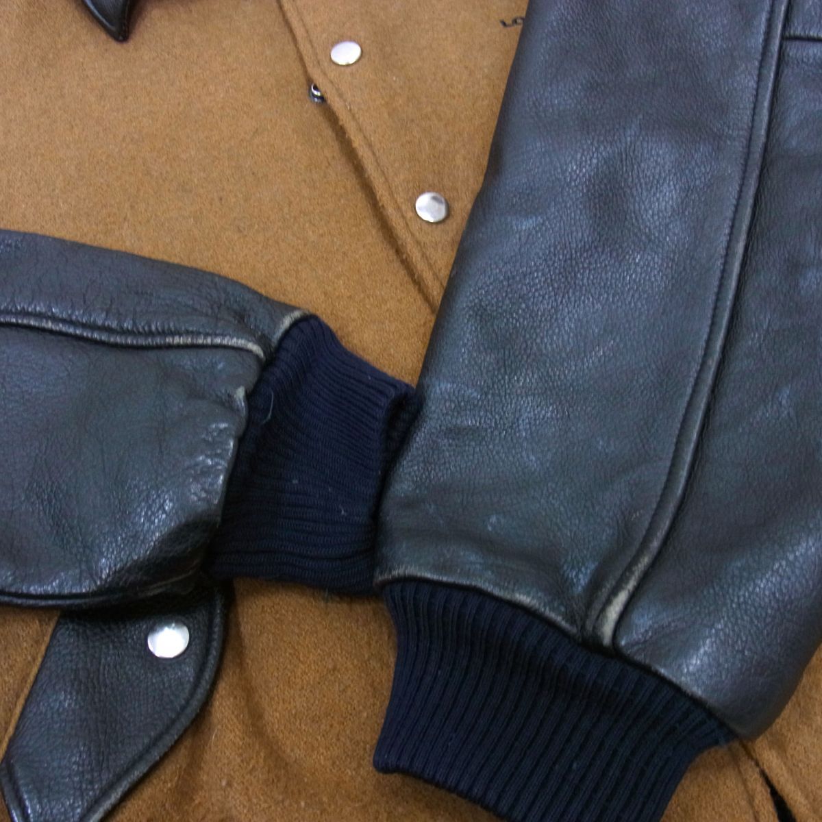 素材表記が消えてみえないですが衿、袖はレザーで身頃はウール素材です。