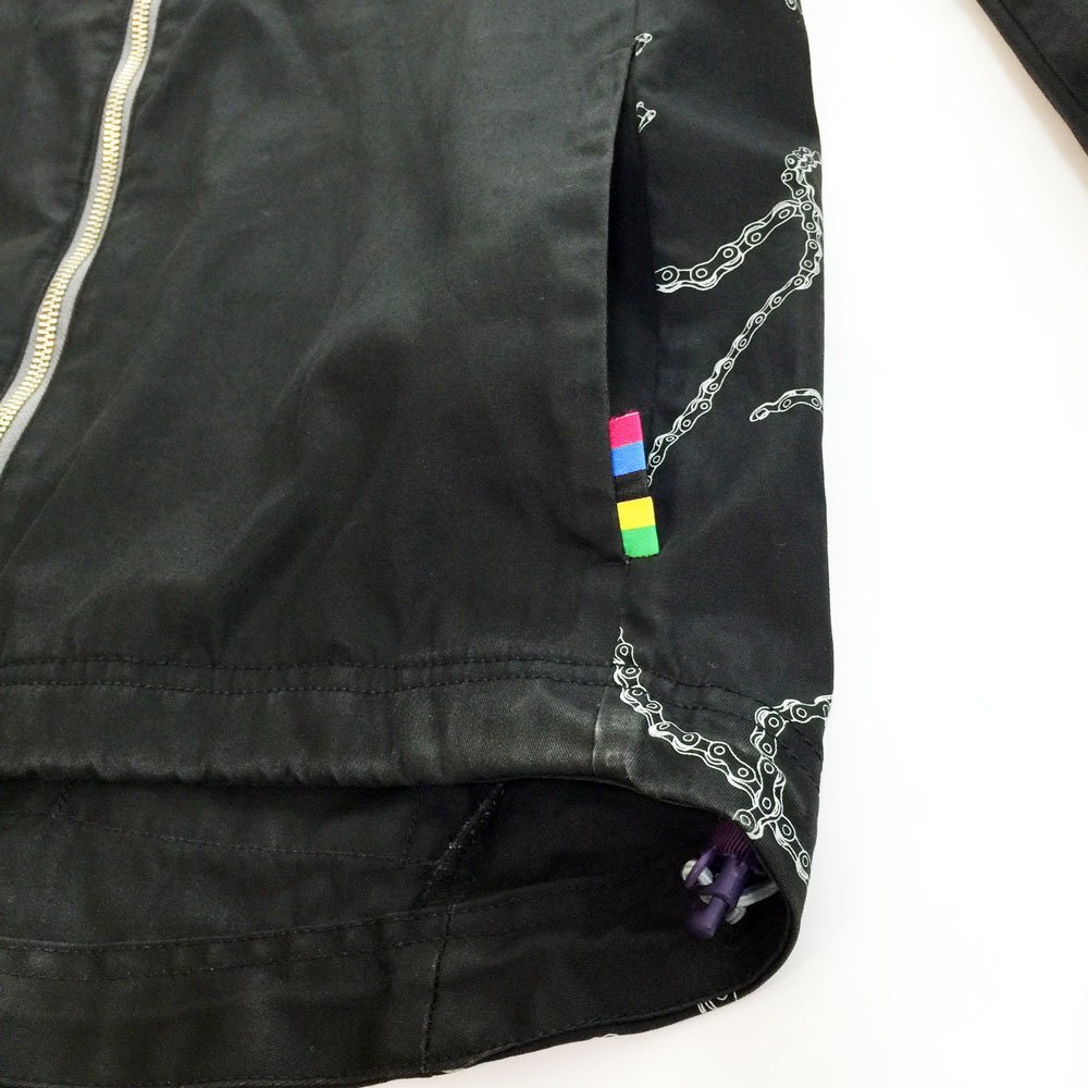 | コメント | ポール・スミスがディレクションしている英国ブランド、アールニューボールド。ロンドンのサイクルショップTOUR de VILLEとのコラボレートシリーズです。 自転車のチェーンの柄をプリントしたサイクリングジャケット。後ろ身頃にポケットが3つ付いています。ロードバイクや自転車が好きな方必見のアイテムです。 状態はUSEDです。スレ、色あせがありますが目立つものはなくキレイです。これからも十分にご着用いただけます。ご理解のある方の入札をお待ちしております。 |