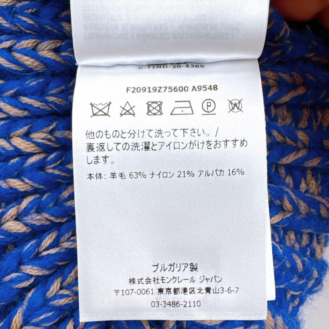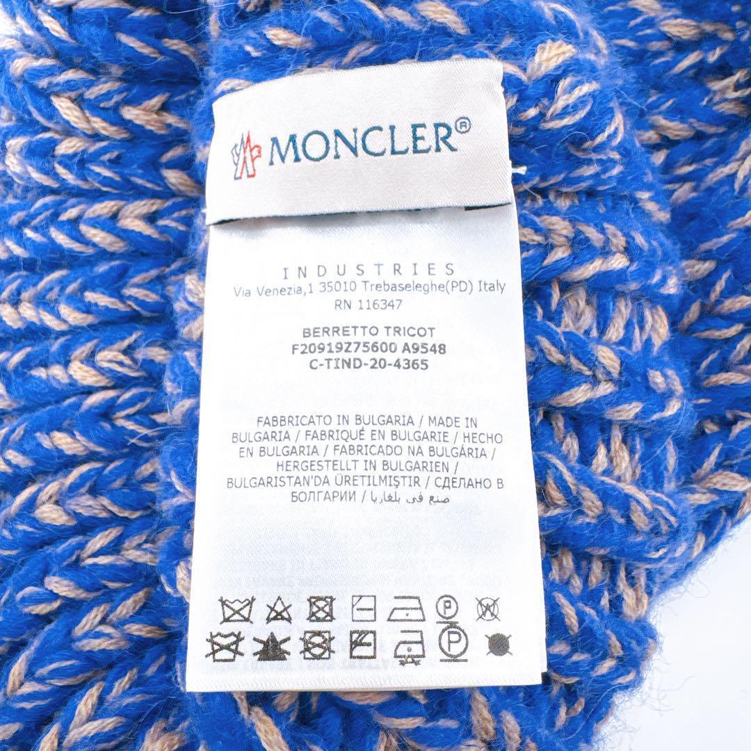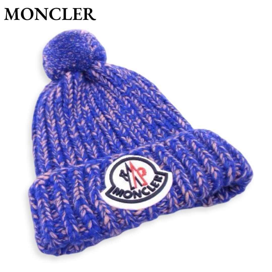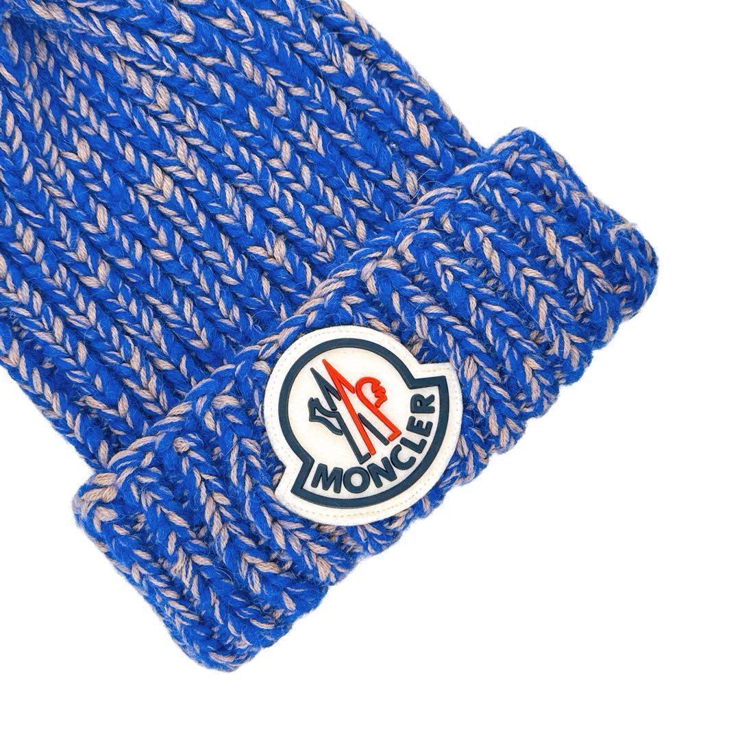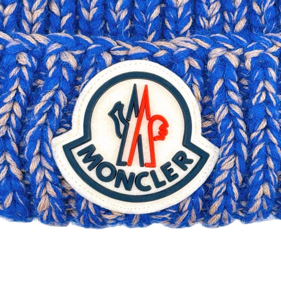 モンクレール ニット帽 羊毛×ナイロン×アルパカ ニットキャップ 帽子 ポンポン ブルー