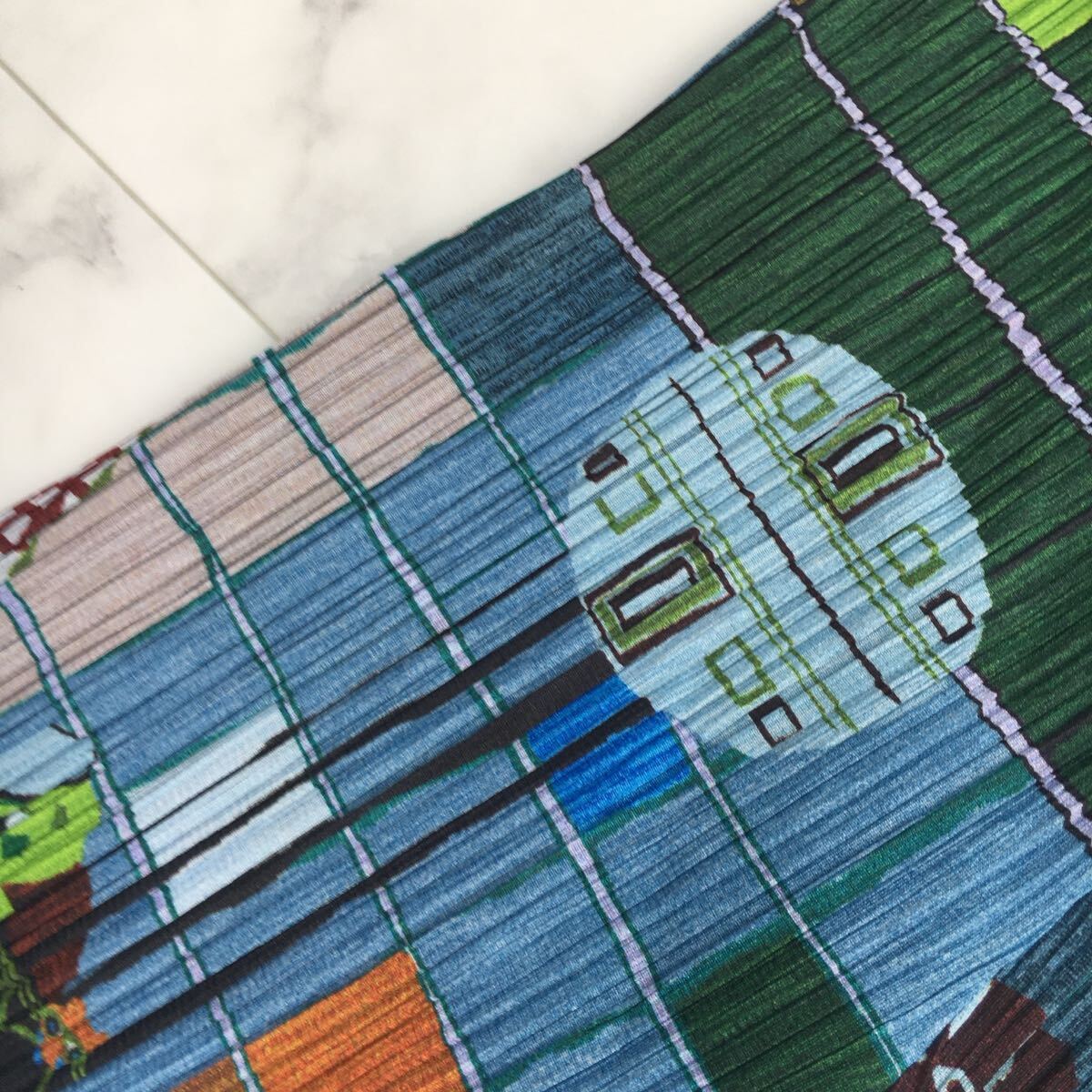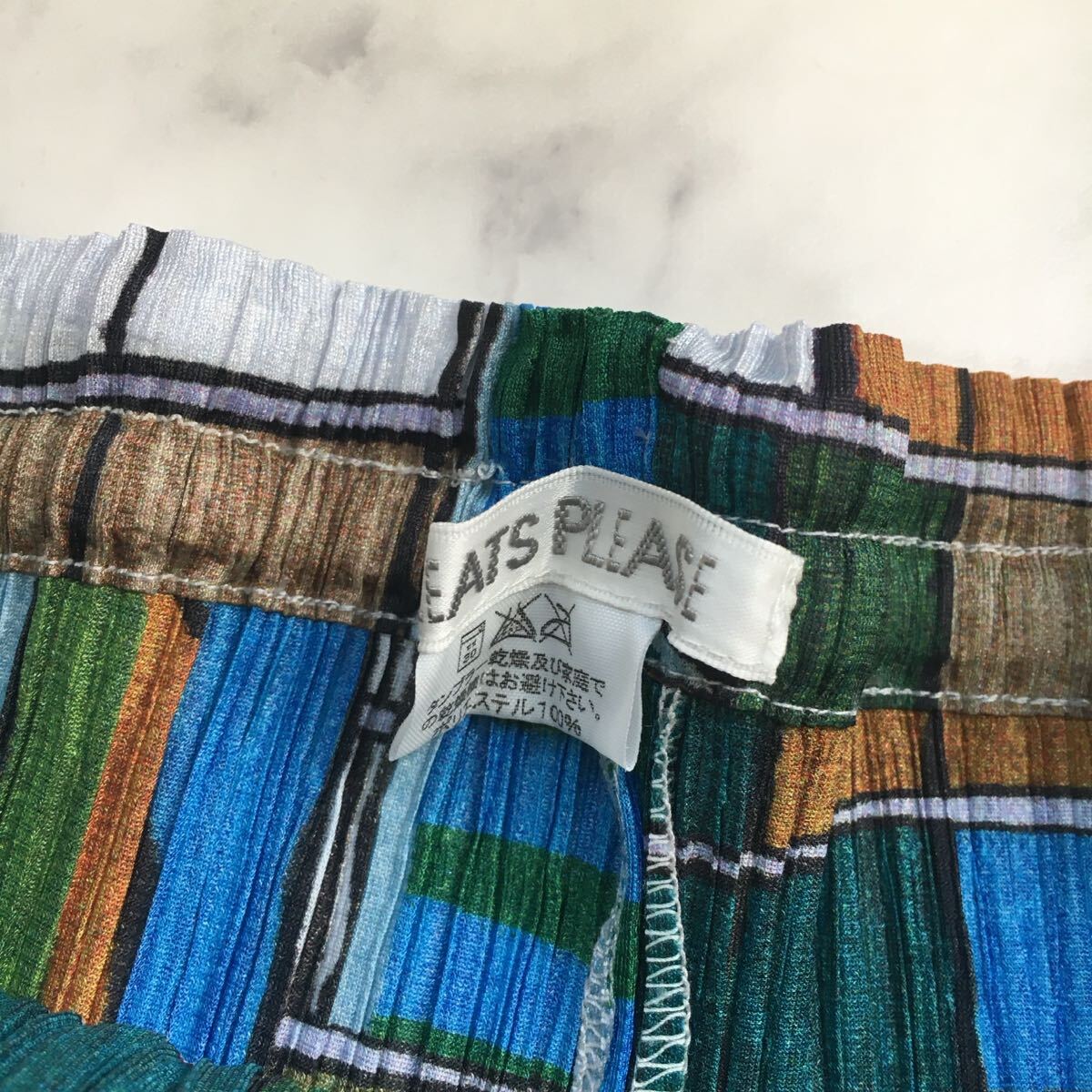程よくハリのある生地に、ウエストはゴムになっていますのでストレスなくご着用いただけます。