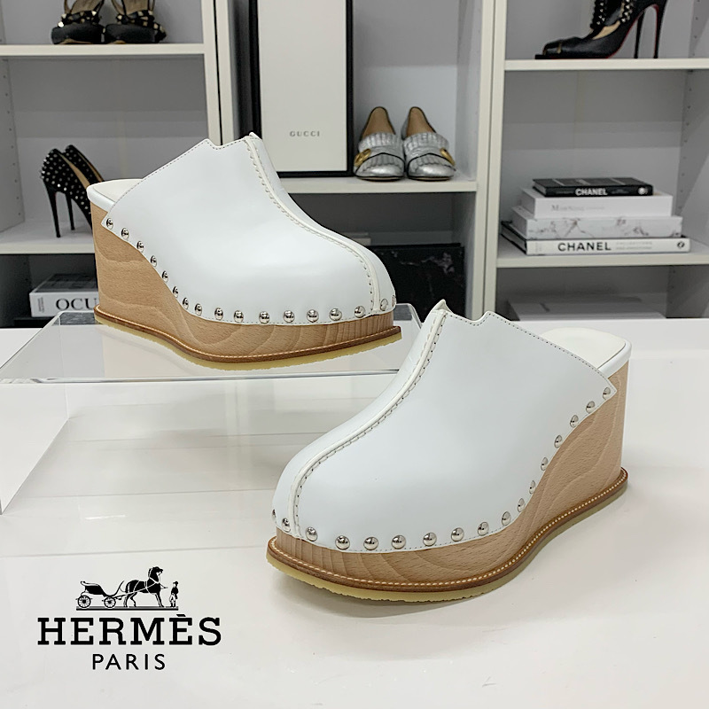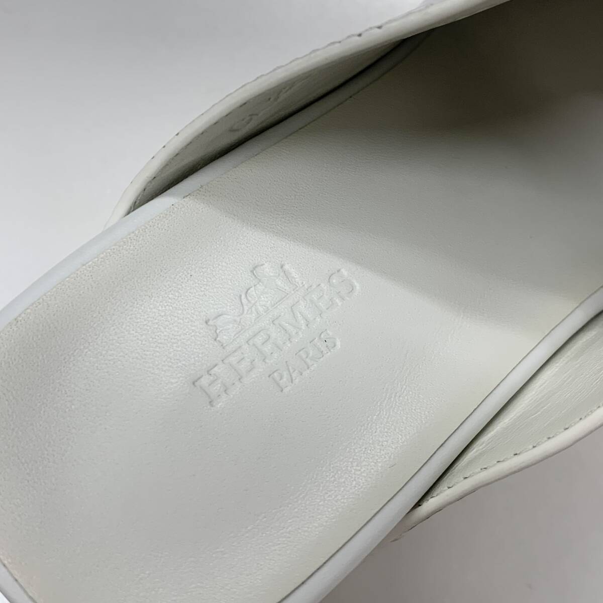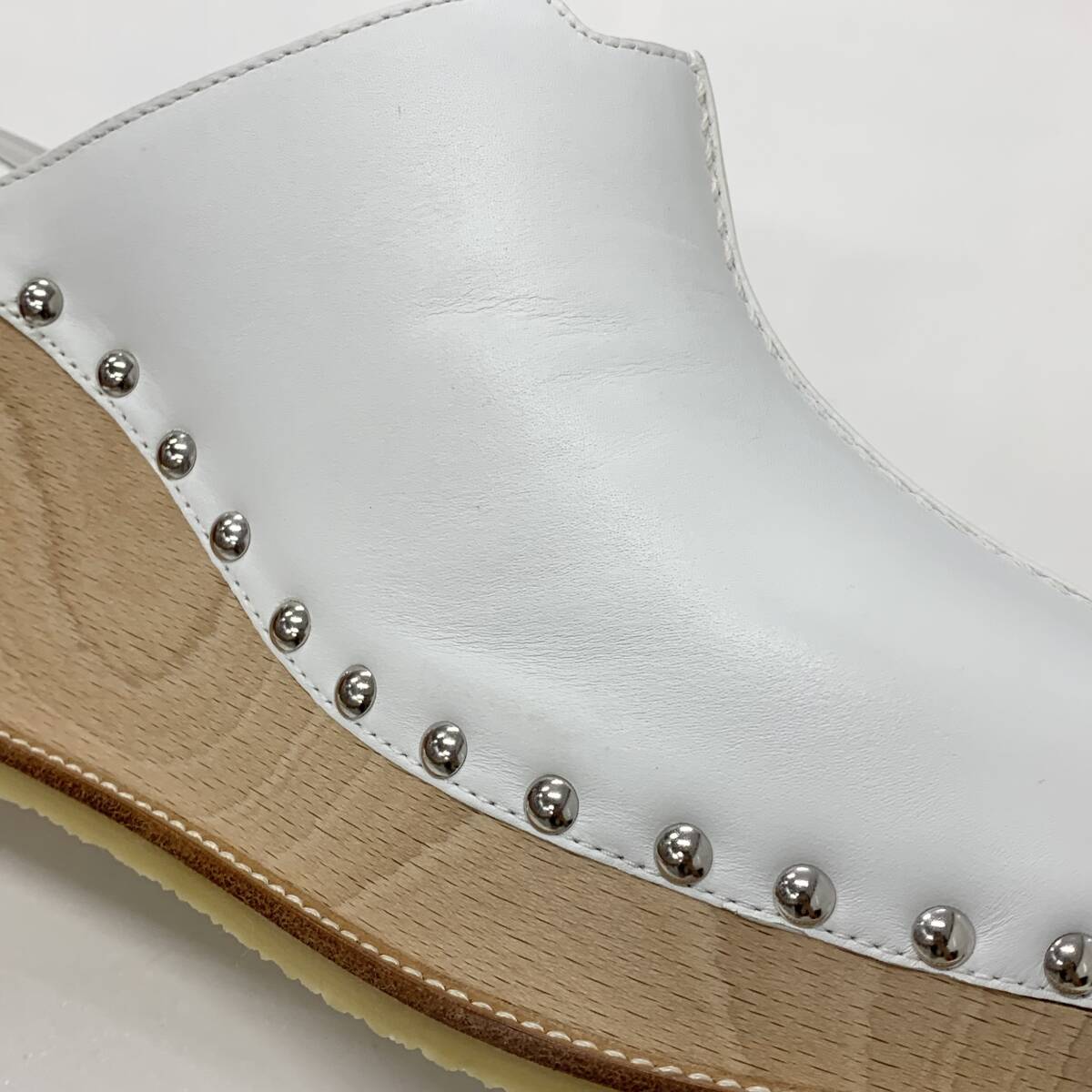 M13138 エルメス アース レザー サボ スタッズ ウェッジソール サンダル ホワイト