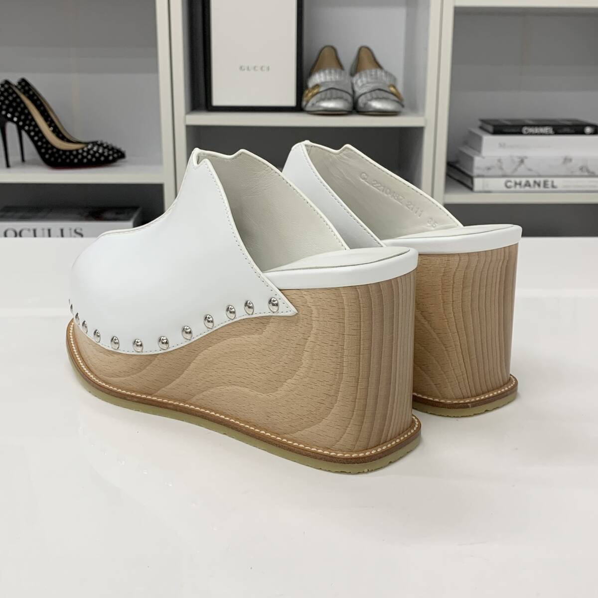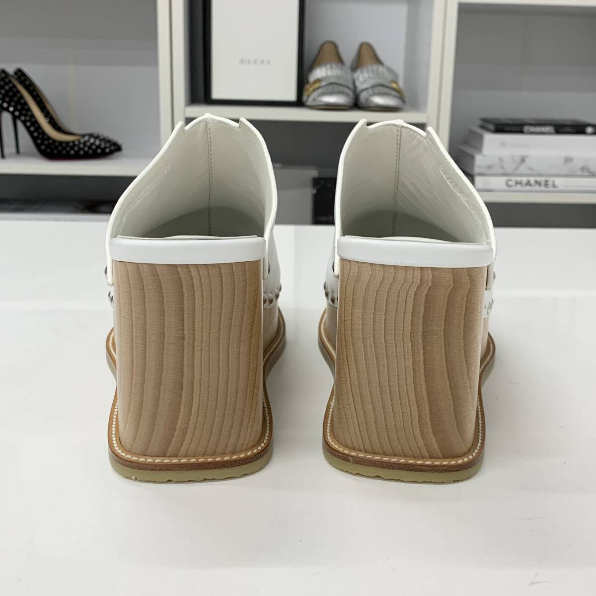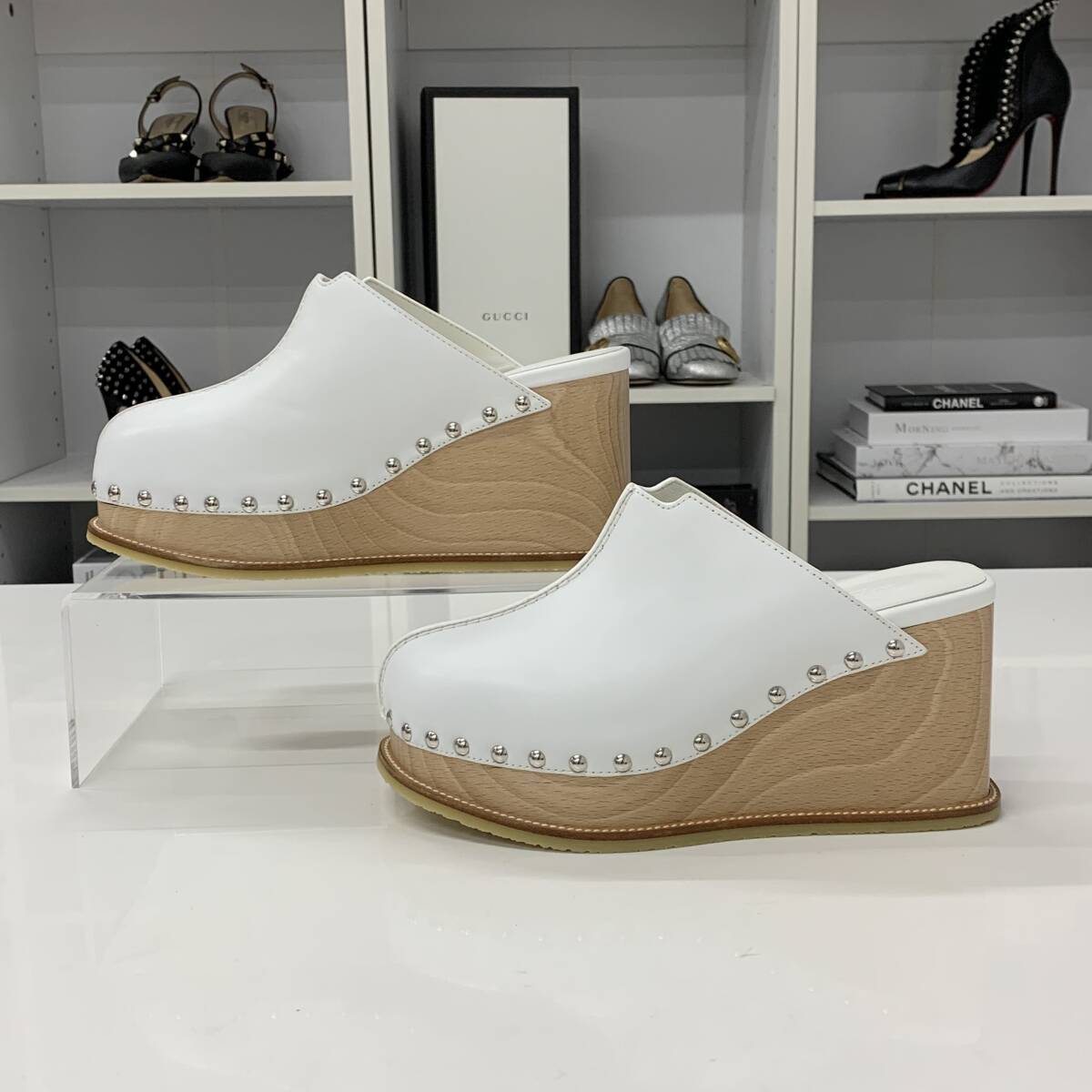 M13138 エルメス アース レザー サボ スタッズ ウェッジソール サンダル ホワイト