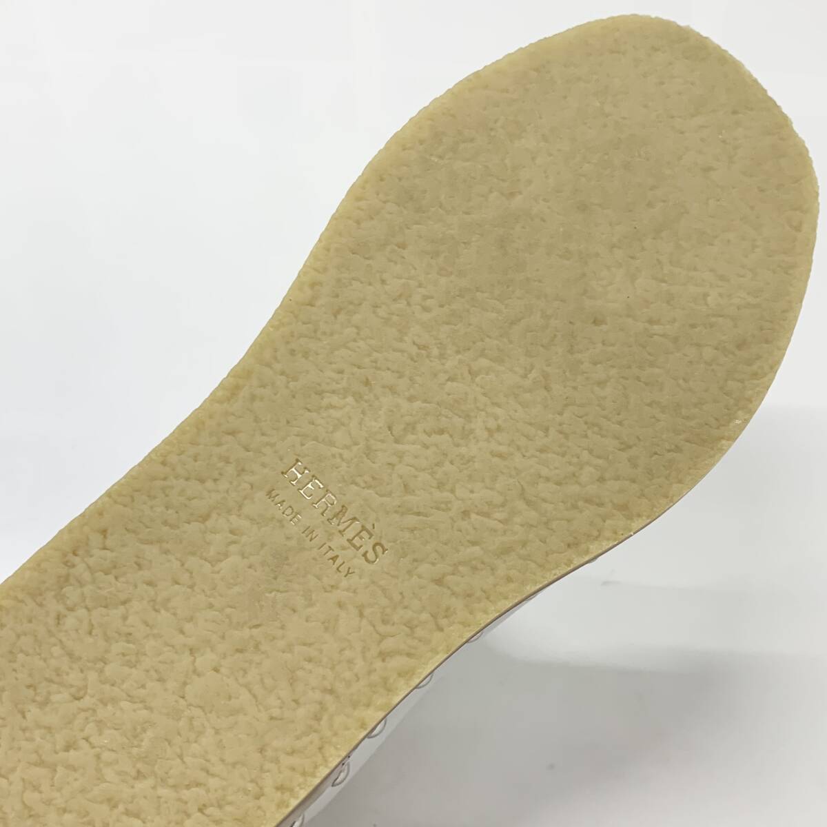 エルメス アース レザー サボ スタッズ ウェッジソール サンダル ホワイト