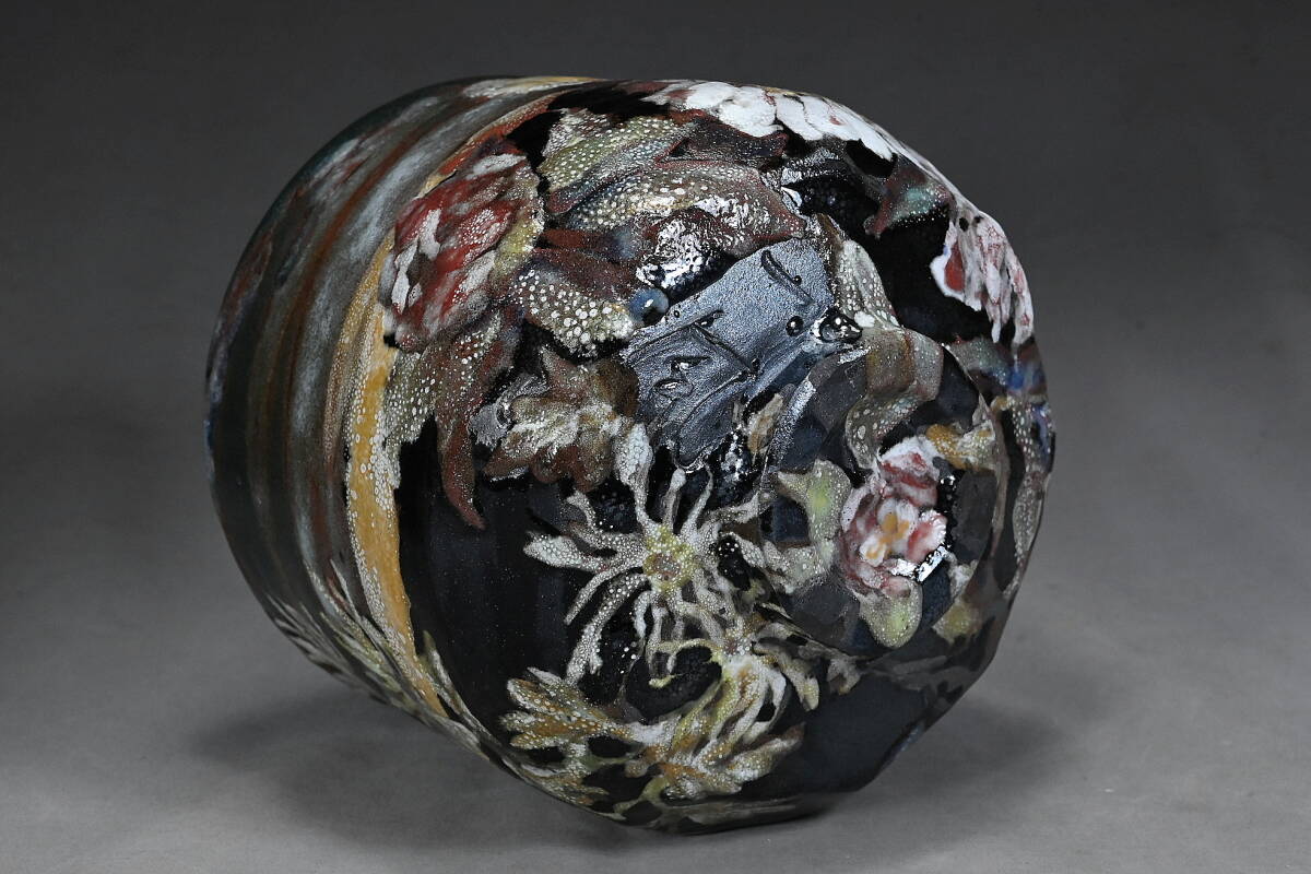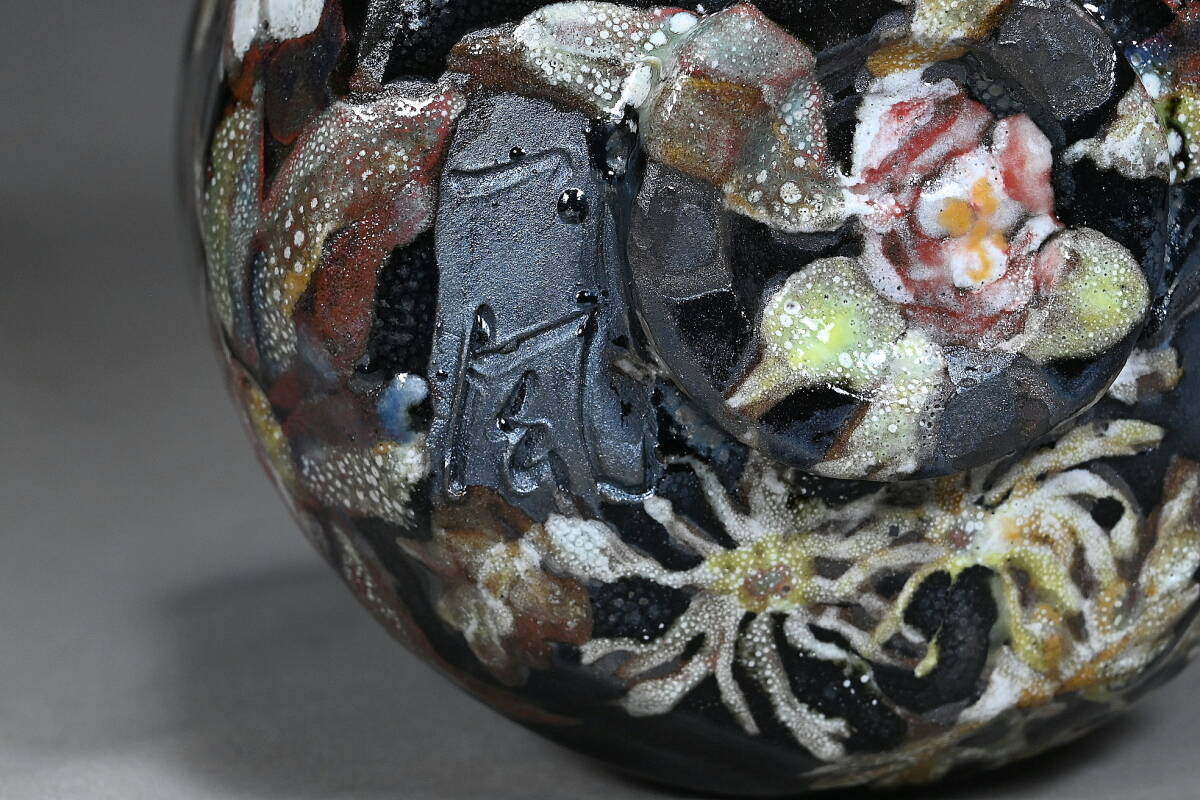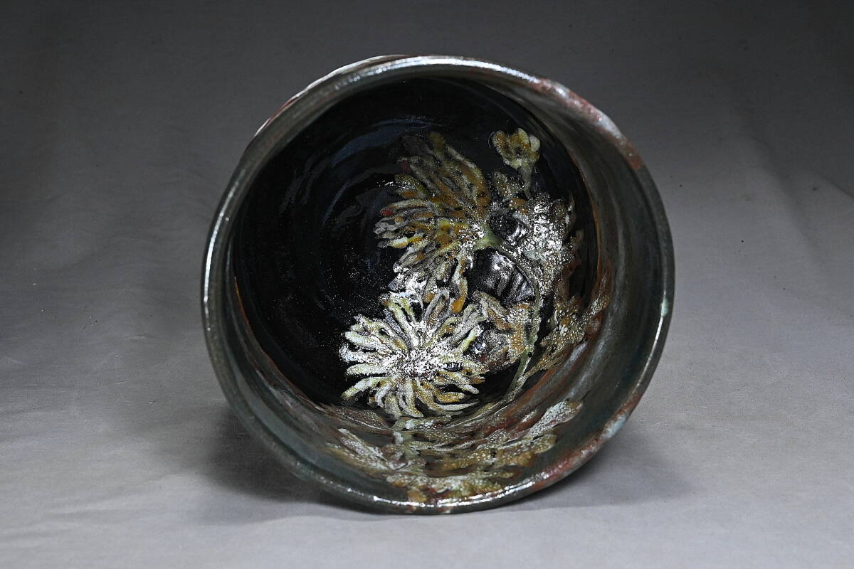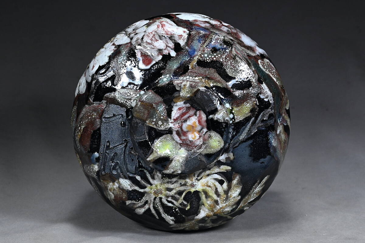 高火度(本焼き)釉薬のみを使って彩画する技法で、