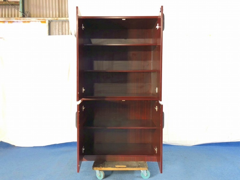 【米軍放出品】書庫 本棚 ブックケース 収納キャビネット カギ付き 両開き 保管庫 収納棚 マホガニー 収納家具 オフィス ☆BJ7AM-W#25