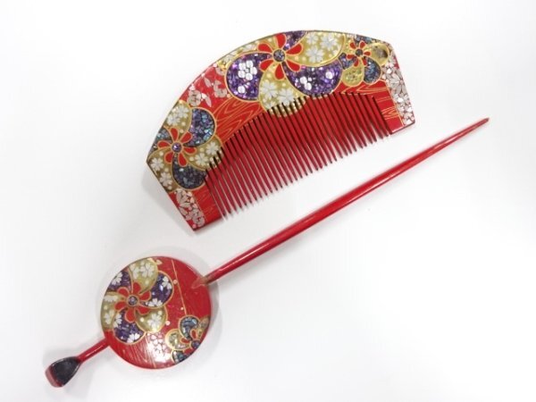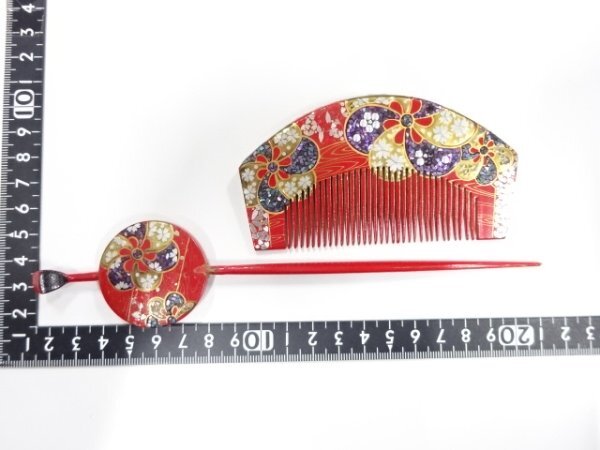 ys7549447; 漆塗り蒔絵 櫛・簪セット【アンティーク】【着】