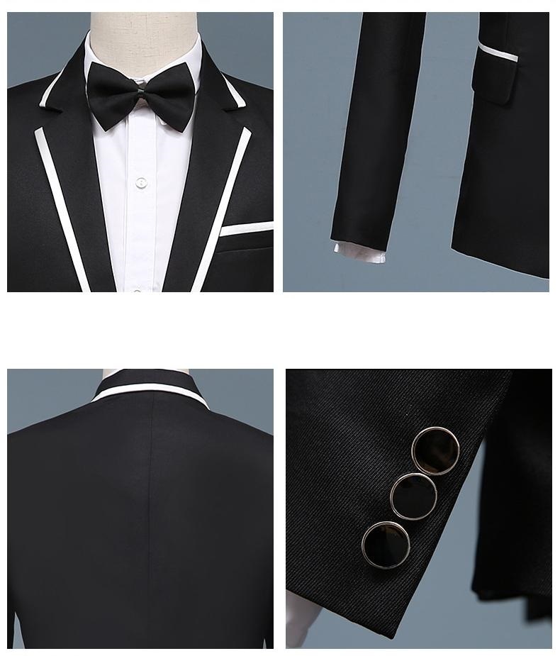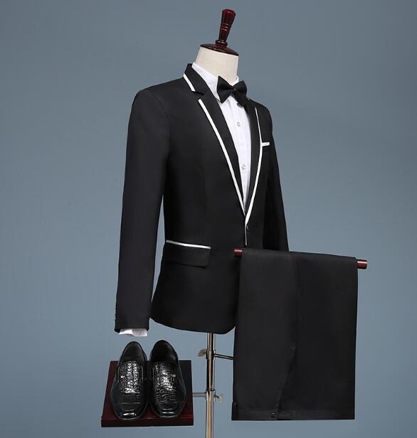 新品 上質 2点セット ホワイト(白)+黒ライン 2色の展開スーツ メンズ スーツセット タキシード上着 ズボンS M L-2XL演奏会舞台衣装 黒