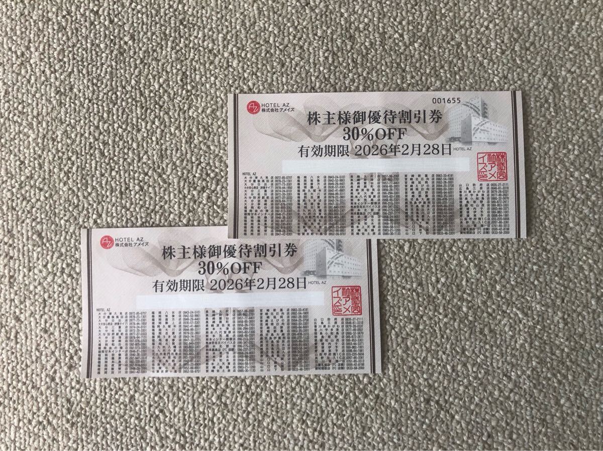 ●アメイズ 株主優待 HOTEL AZ 30%割引券
