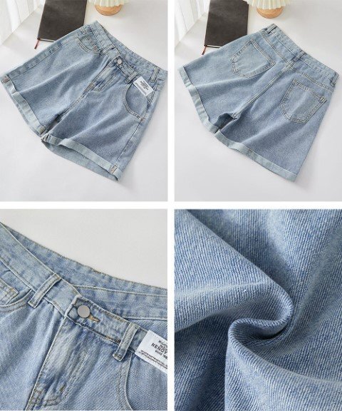 デニムショートパンツ ロールアップホットパンツ Aライン カジュアルジーンズ ショートジーンズ S ブラック