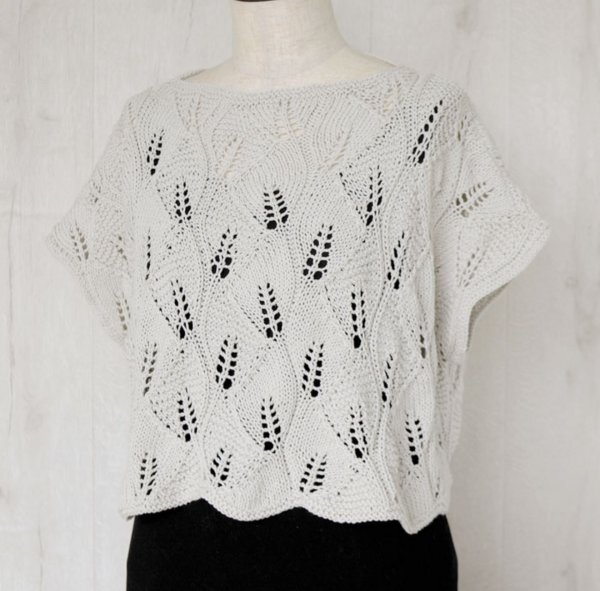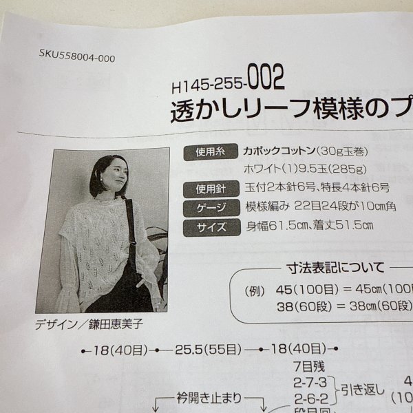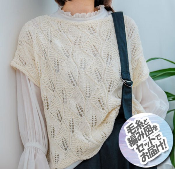 ZB636-23 ハマナカ 透かしリーフ模様のプルオーバー 着分セット(カポックコットン10玉・編図)【着分28番】 編物キット