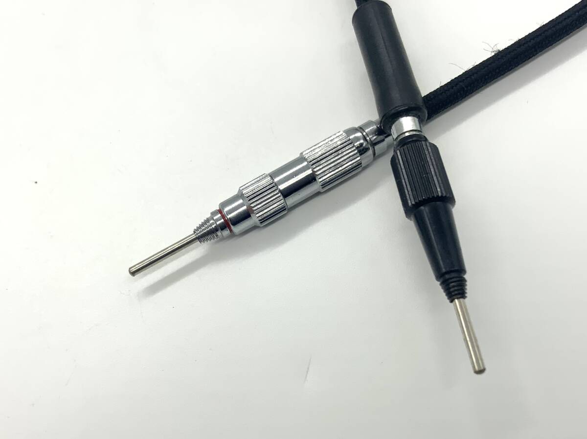 レバープッシュすると時間差で二つの芯棒が出てくるのを確認しています。レバーの戻りが悪い場合があります。