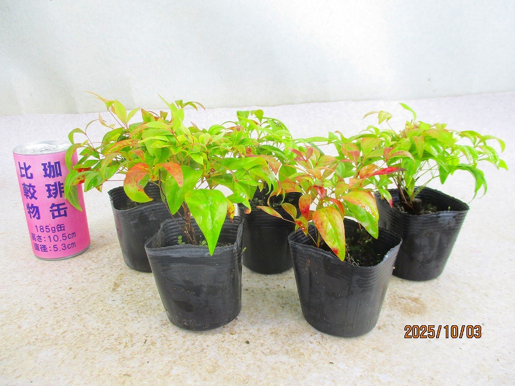 [緑の市場]お多福南天 5点組(10284黒ポット)全高:17㎝*同梱包対応「まとめて取引」厳守*80サイズ送料明記 同梱包ご希望は「まとめて取引」でお手続きして下さい。 *同梱包は[緑の市場]のタイトルでの出品商品に限ります。類似画像で他IDの出品にご注意下さい。* 単品(セット品は1組)発送ご希望の際は「まとめて取引」の手続きをしないでください。入札前に必ず下記の「発送方法」に記載の送料を確認してください。 ヤフオクの取引においてメッセージは特に必要ありません。挨拶などを省略できる取引システムですし取引ナビの通知で進行状況が判るので都度の連絡(送金や受け取りのメッセージ)は不要です。配送日時指定や連絡事項のみお知らせください。双方合理的に進めましょう。また、お急ぎの方は入札をご遠慮ください。業務時間内での対応になります(土日祝休業)。 寸法は鉢を含む全高です。(樹高ではありません。) 一緒に撮影しているスケールまたは比較物をご参照ください。 飲料缶は高さ約10㎝、直径約5㎝です。 500mlペットボトルは高さ約21㎝です。 ■画像の様子から経時変化しますので撮影日(画像記載)からの変化はご了承下さい。 *花物・実物は特にご注意下さい。 画像(撮影時)では開花品でも、お届け時は花終わりを想定して下さい。 ◎落札が無い場合は、自動再出品が継続されます。 撮影から2か月経過した場合、どんどん開始価格が下がりますが、商品の劣化も進みますので、 撮影日からの期間経過品はある程度の劣化を想定で入札にご参加下さい。 商品により90日間程度(物によりそれ以上)同じ画像を使用しますので、必ず撮影日をご確認下さい。 |