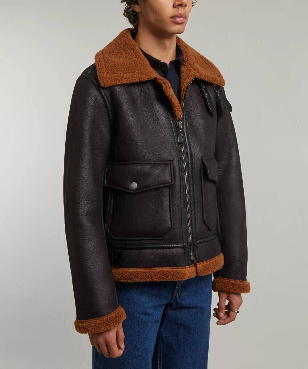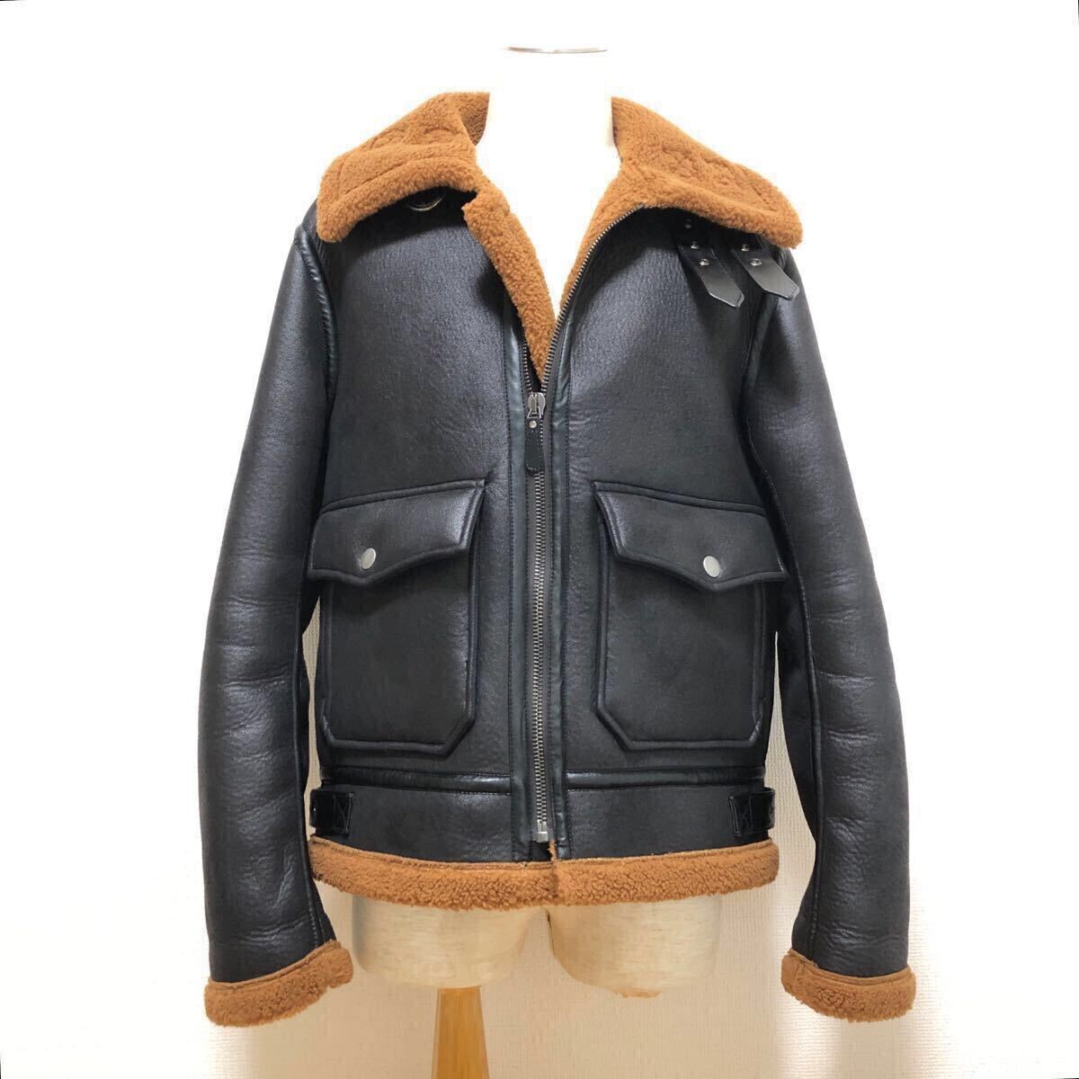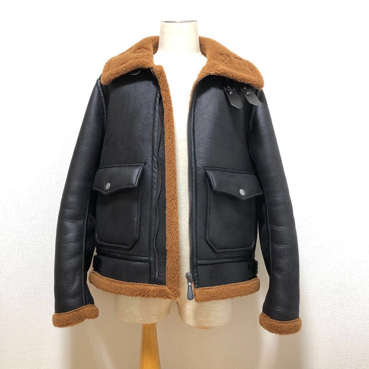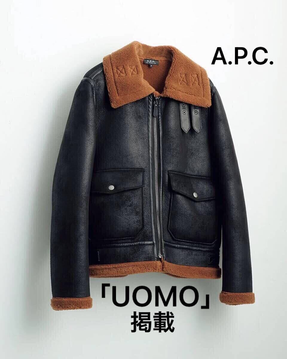 【UOMO掲載】A.P.C. ムートン ジャケット M 黒×茶 22AW TOM TOMMY フェイク レザー ボア シアリング アビエイタースタイル シンセティック