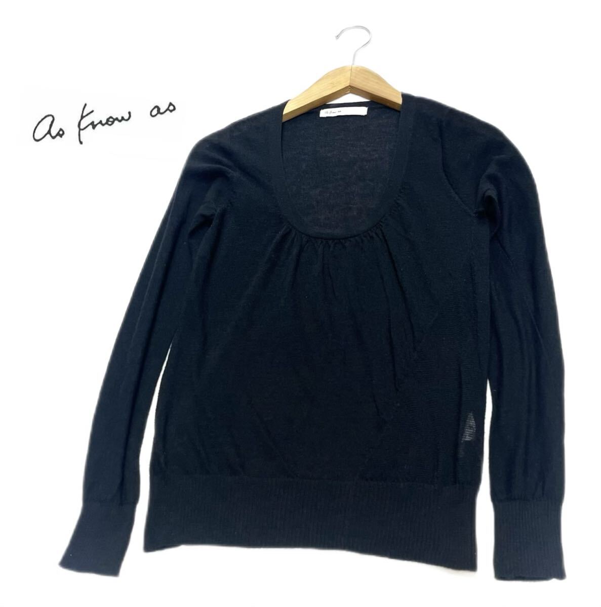 as know as★アズノウアズ★綿ポリ 薄地 ニット プルオーバー 長袖 トップス/黒