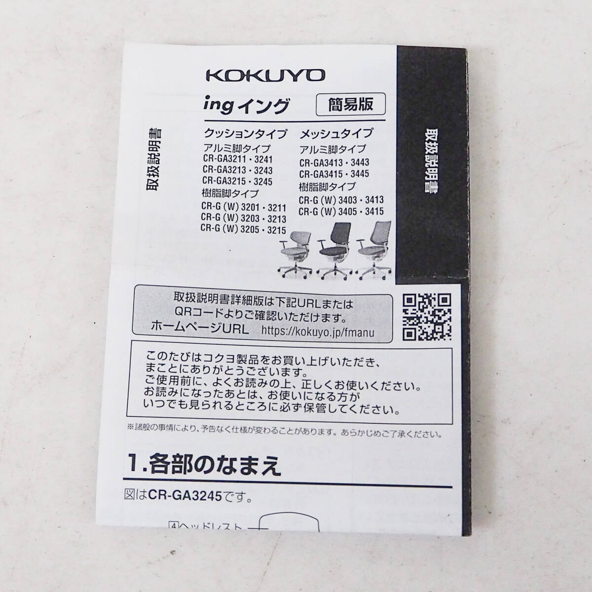 KOKUYO コクヨ オフィスチェア ing イング クッション ラテラルタイプ CRS-G3200E1 3Dポスチャーサポートシート グライディングメカ S1588
