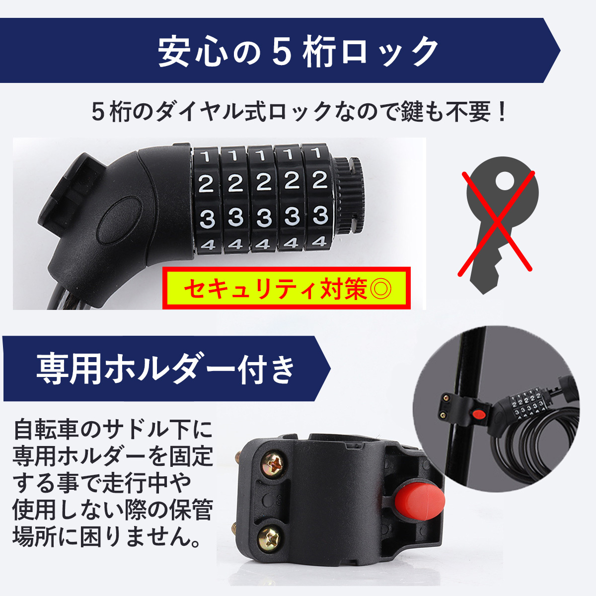 後付け おしゃれ キッズ キー キーレス 軽量 ケーブルロック 固定 子供 子ども こども 後輪 子供用 サドル サドル下 シートポスト 取り付け ママチャリ 頑丈 番号 ブラケット ブラケット付き バイク 自転車ロック 1.2m 暗証番号 サイクル クロスバイク ロードバイクロング