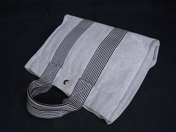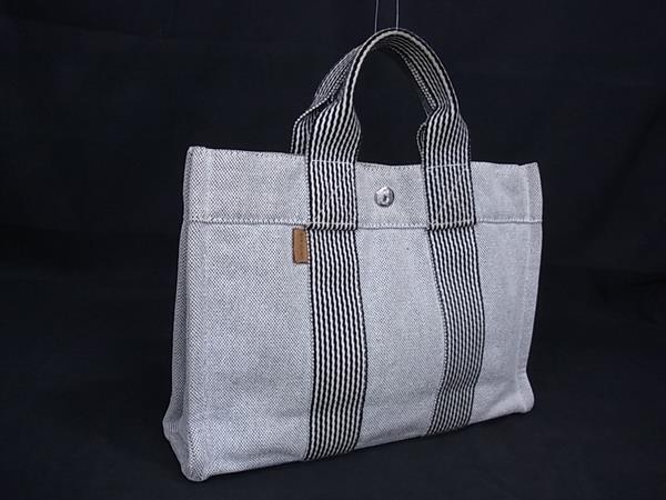 1円 HERMES エルメス ニューフールトゥPM キャンバス シルバー金具 ハンドバッグ トートバッグ レディース メンズ グレー系 FN6690