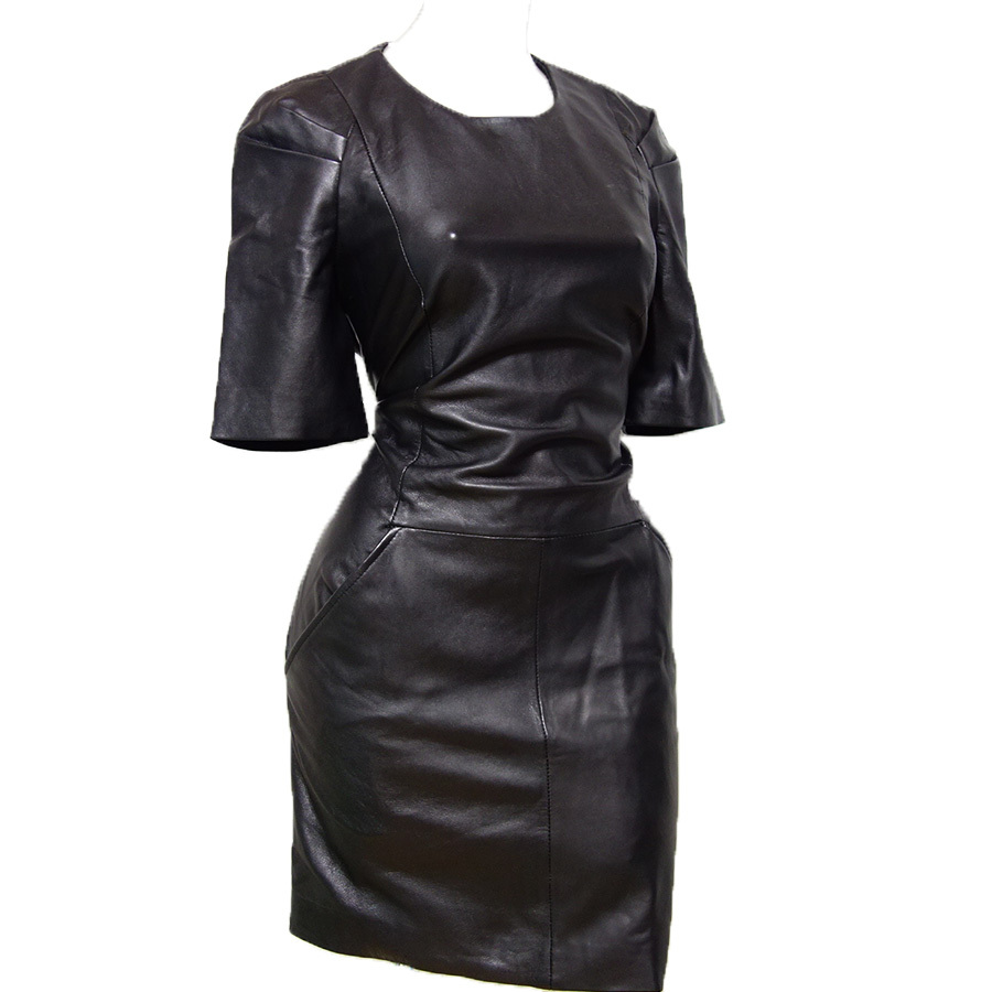 リアル ラムレザー ラムスキン 羊革 本革 ワンピース 黒 | ||||||||||||||||