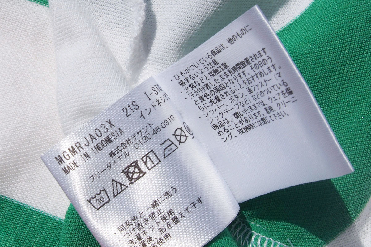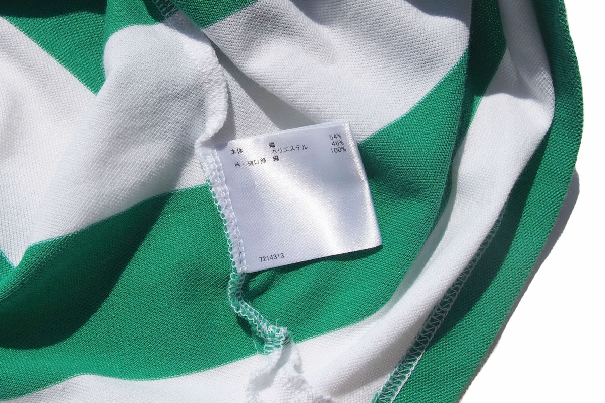 グリーン×ホワイトの太ピッチボーダーに、オレンジの差し色が映えるカラーコンビネーションが、夏のゴルフスタイルに鮮やかなアクセントを添えます。