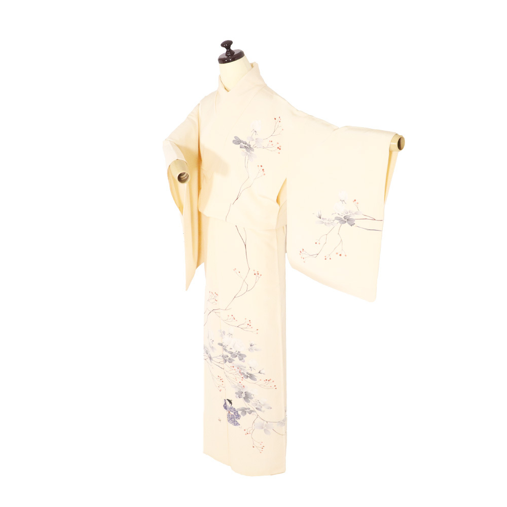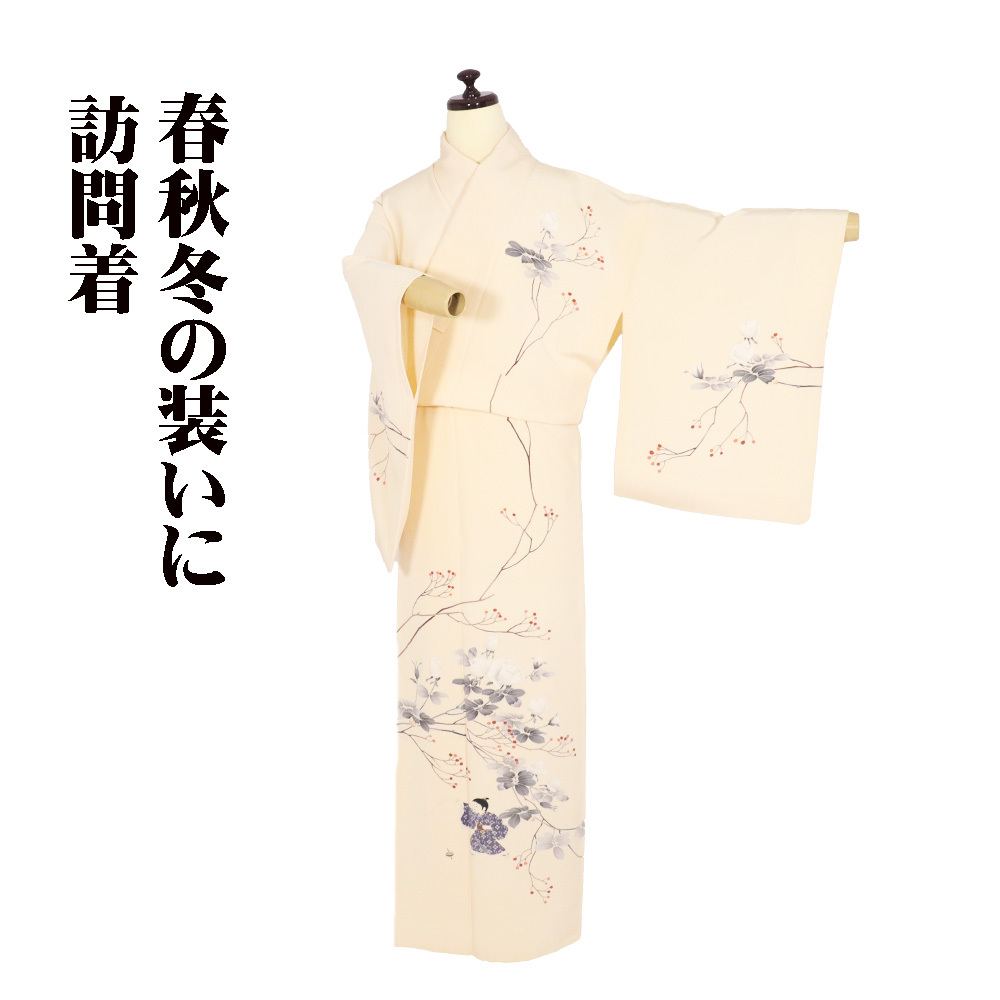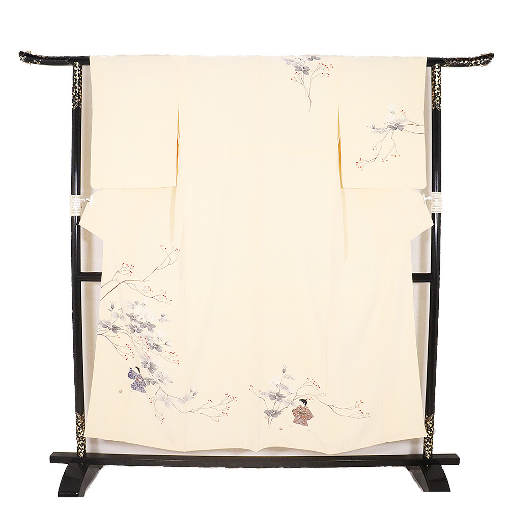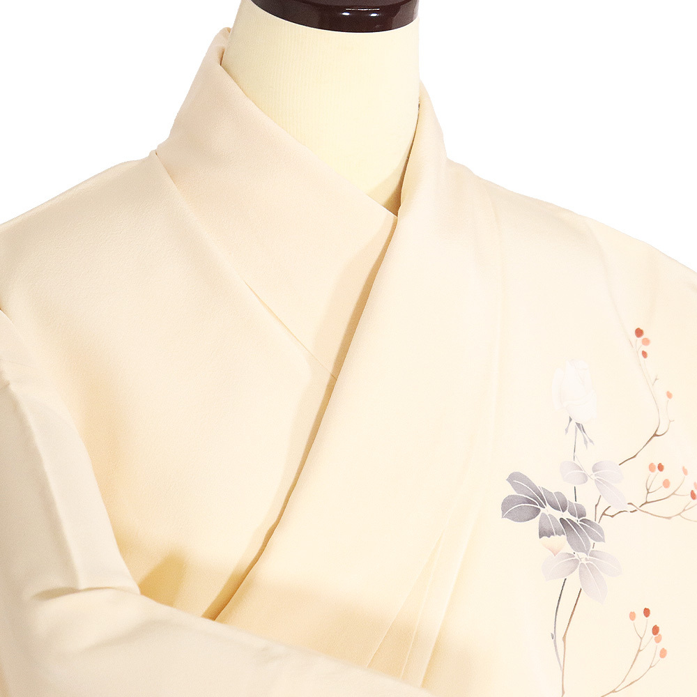 | 友禅訪問着 袷 丹後縮緬地 クリーム(蜂蜜色)地 薔薇・童 159 広襟 | |