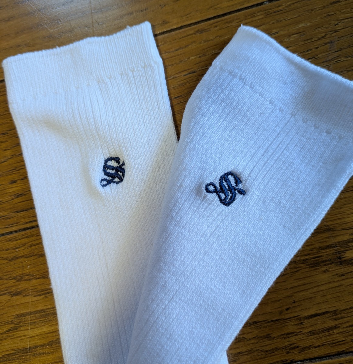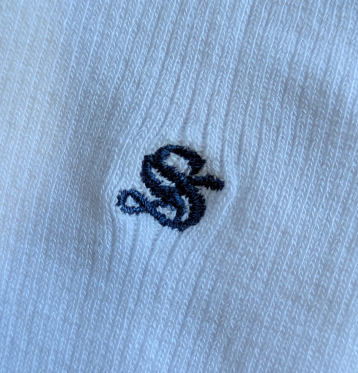 ★ ワンポイント刺繍(両面)※ オールドイングリッシュ書体の「S」(ネイビー)