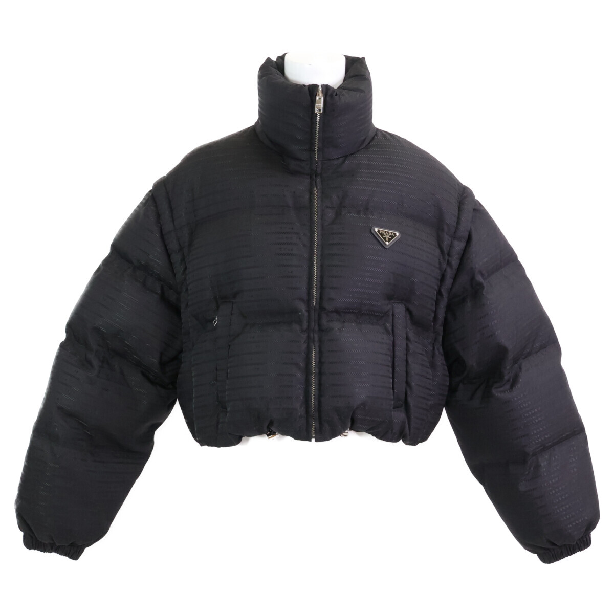 PRADA プラダ 29Y056 トライアングルロゴプレート リナイロンクロップドダウンジャケット 40 ブラック レディース