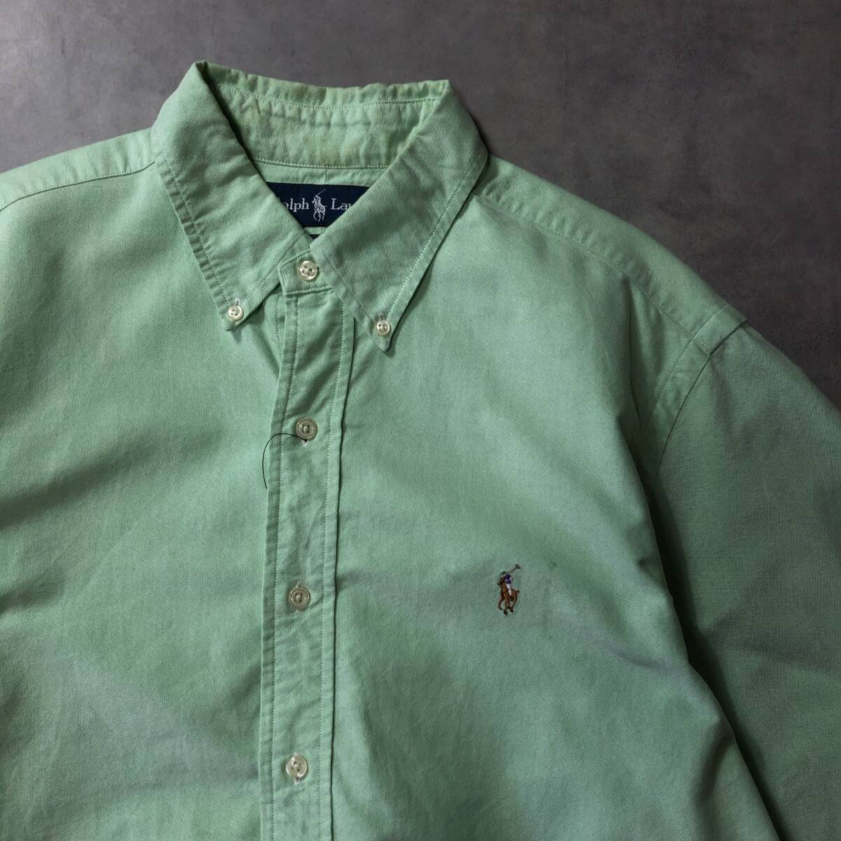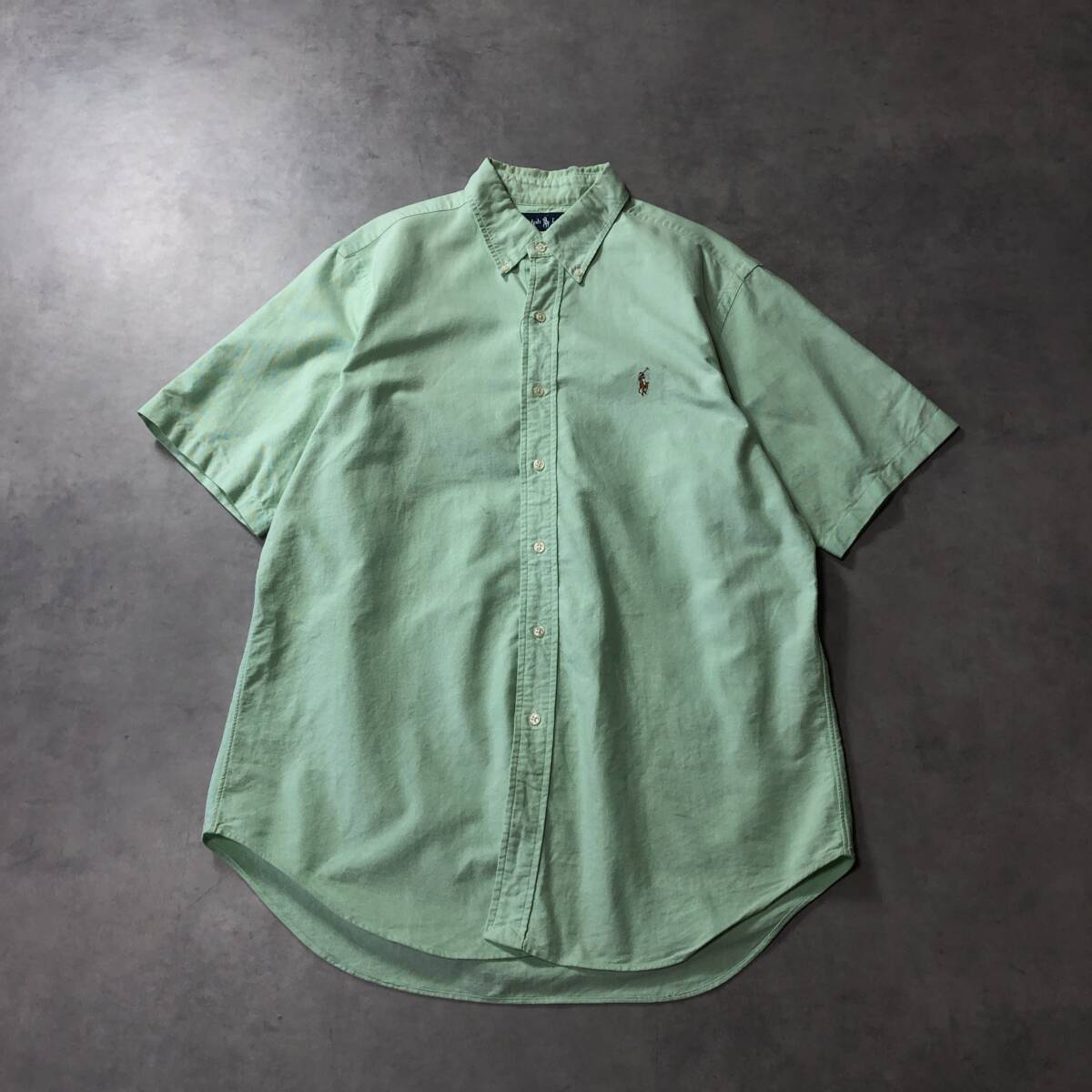 商品名 :GQ3769◇Ralph Lauren : ボタンダウン 半袖オックスフォードシャツ CLASSIC FIT◇L◇ライトグリーン系 ラルフローレン ポニー
