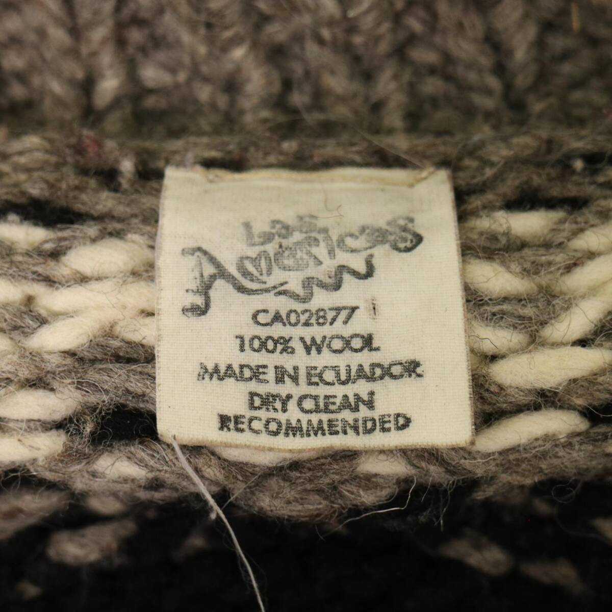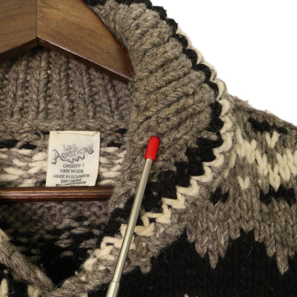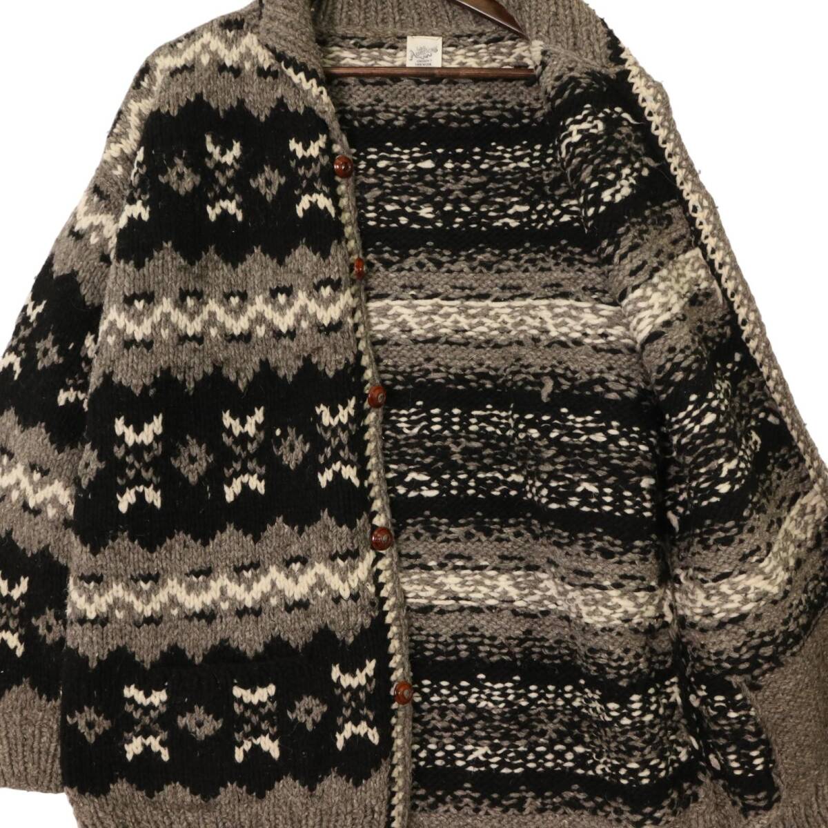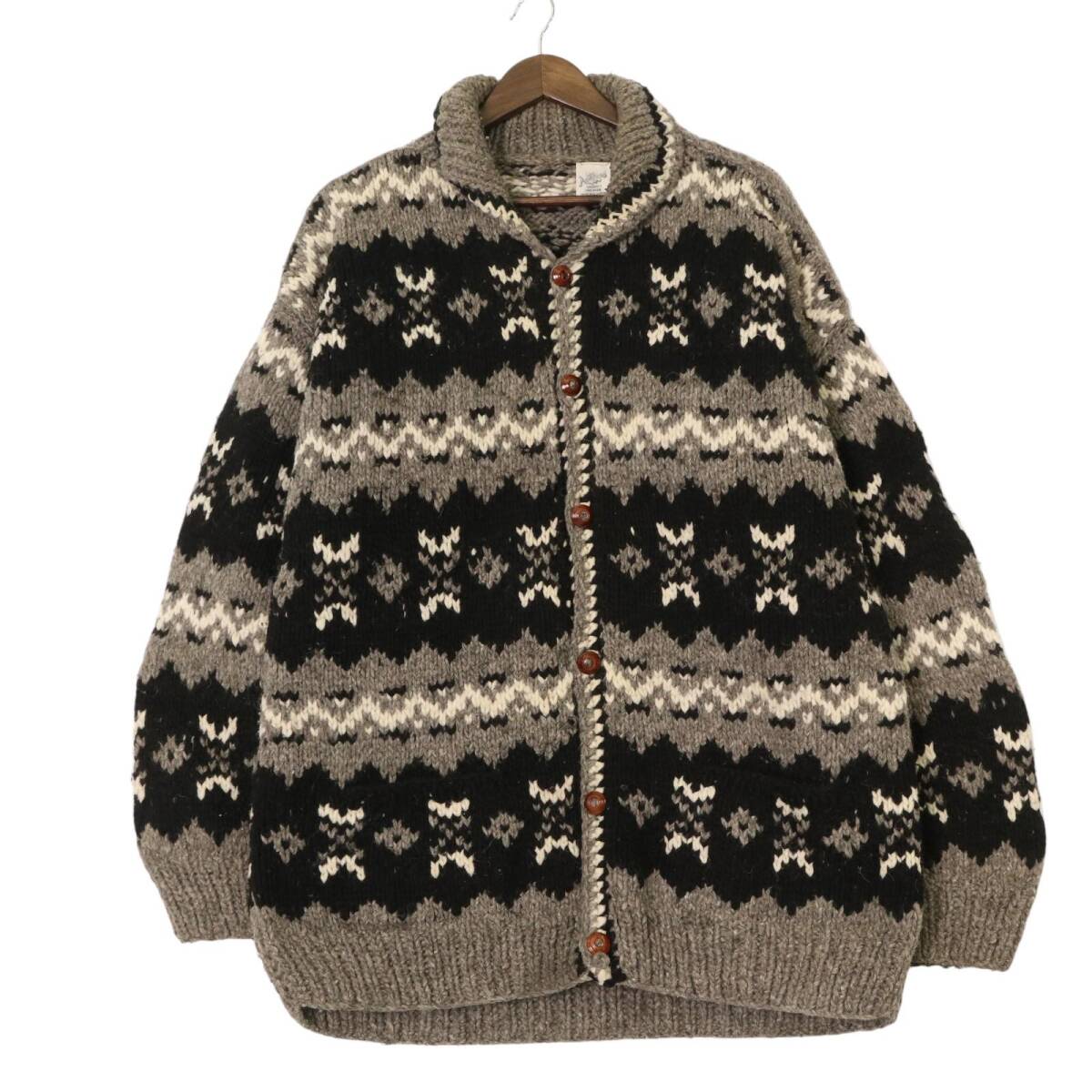 | 【商品管理番号】 A2595 【サイズ】 XL相当 【実寸サイズ】 肩幅:約68cm 着丈:約80cm 身幅:約64cm 袖丈:約60cm 【主な素材】 表地 : ウール 【色】 グレー 【仕様】 ウール ニット エクアドルニット 総柄 【状態】 特記事項: 襟の薄い汚れ、全体的に小さな毛玉がございます。着用に問題はございません。 | |||