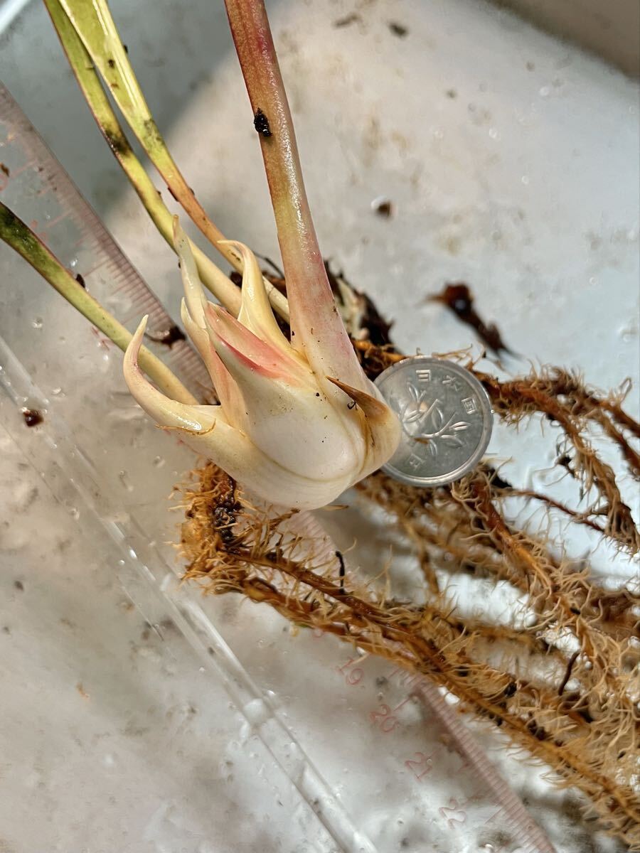 出品株は開花サイズの1芽です。立派なバックも付いているので外してバックぶせもできます。