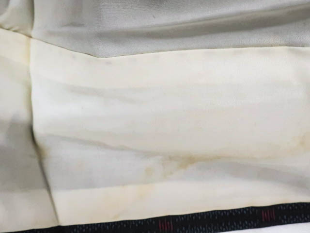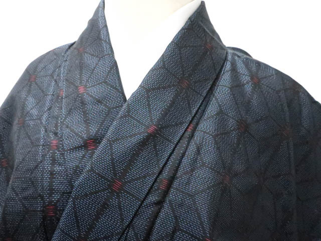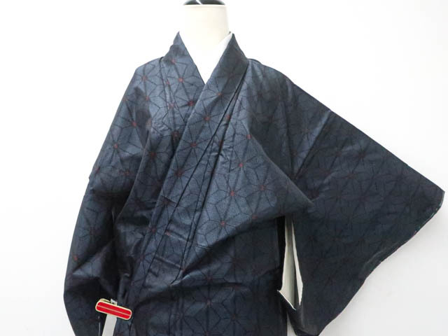 リサイクル商品のため、胴裏、衿裏にシミ、胴裏にスナップボタンによる汚れがございますが着用可能なお品です。 地色は紺です。 1枚目の画像が近いお色かと思われます。 素材は正絹です。 |