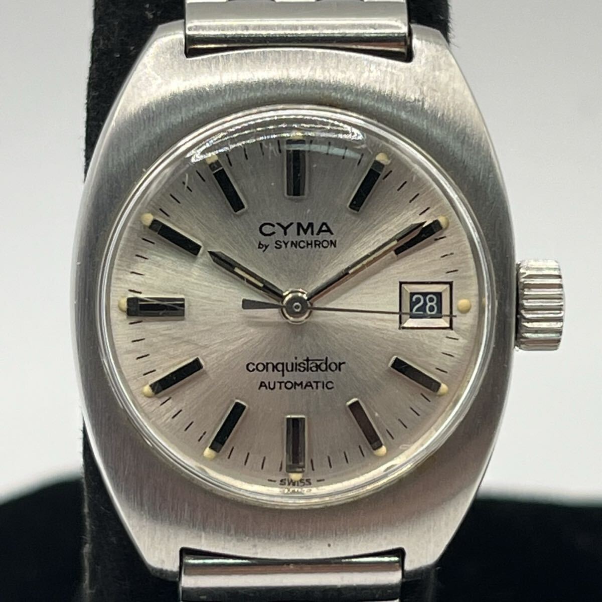 1円スタート~ 稼動品 希少 25mm CYMA 腕時計 自動巻き シーマ ジュネーブ Geneve シルバー文字盤 アンティーク ヴィンテージ