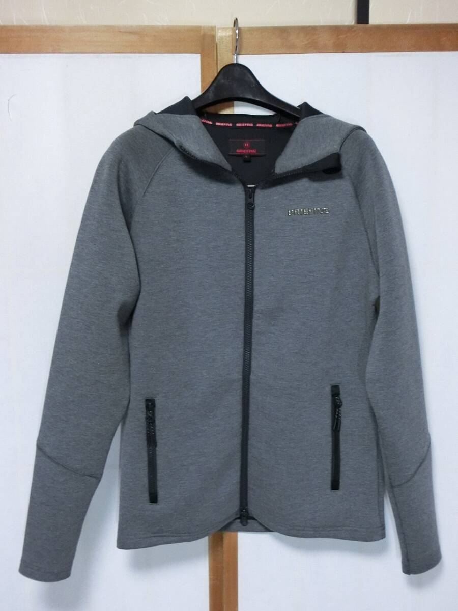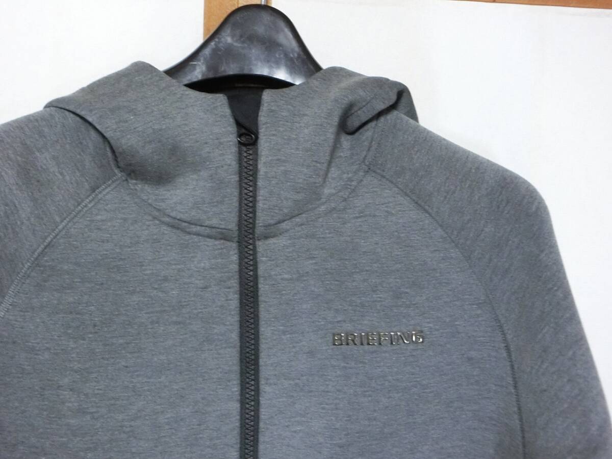 ◆BRIEFING GOLF ブリーフィング やや濃いグレー杢のウォームタイプで、背中に3Dロゴが付いた前開きの長袖パーカー です。
