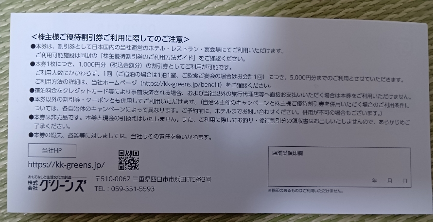 ②3/31 5枚 グリーンズホテル 株主様ご優待割引券 コンフォート 旅行 観光 出張 宿泊 レストラン 宴会 クーポン券 ビジネス 東京大阪名古屋